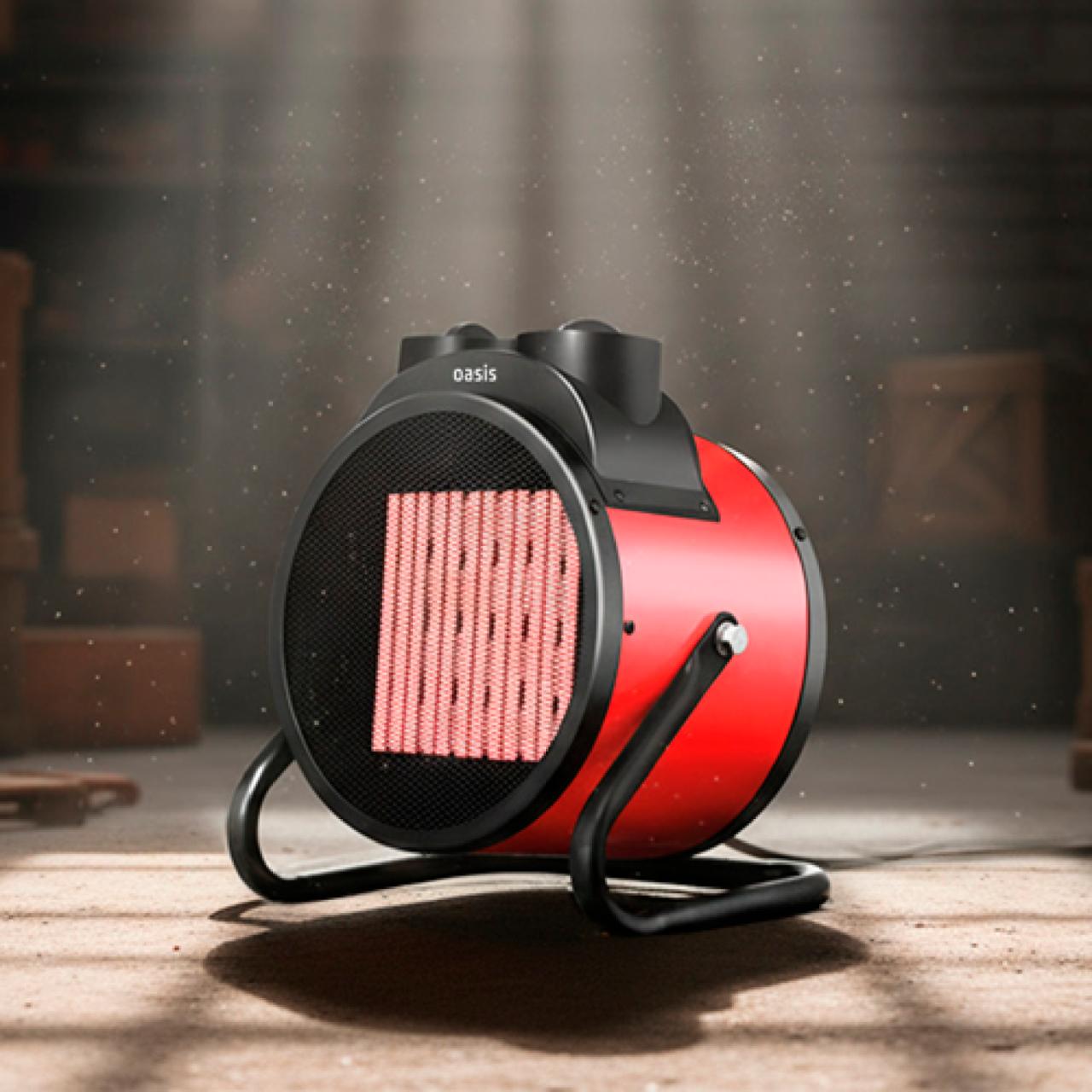 Тепловая пушка Oasis – отличное решение для обогрева дома или гаража. Устройство обеспечивает мощный поток тёплого воздуха, что позволяет в короткие сроки достичь желаемой температуры. Идеальный вариант как для жилых помещений, так и для хозяйственных зданий. Тепловая пушка оснащена металлокерамическим нагревательным элементом, который пожаробезопасен и не сжигает воздух в помещении. Регулировка температуры позволяет выбрать оптимальный режим обогрева в зависимости от требований. При этом управление тепловой пушкой простое и удобное. Настройка угла наклона обеспечивает гибкость в управлении направлением воздушного потока. Безопасность использования гарантируется встроенной защитой от перегрева, а также воздухозаборной решёткой, исключающей попадание посторонних предметов на нагревательный элемент. Устойчивая конструкция позволяет эффективно эксплуатировать прибор на любой поверхности.