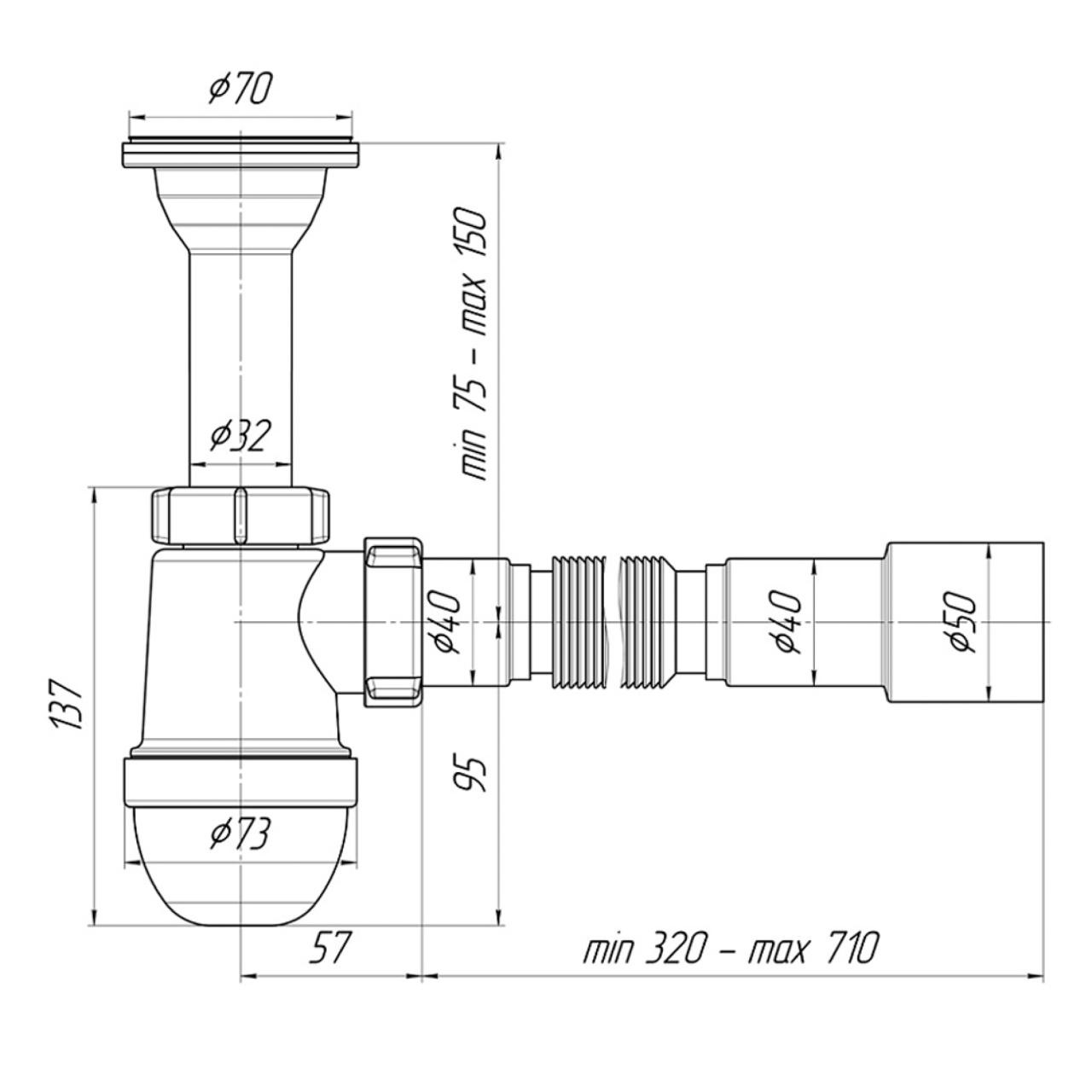 Гибкая труба 40×40/50 мм облегчает установку сифона даже в труднодоступных местах и позволяет адаптировать конструкцию под особенности монтажа.