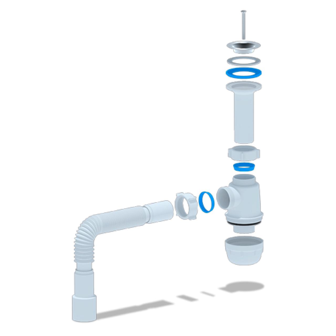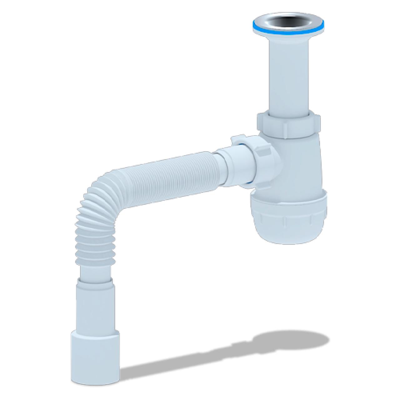 Гибкая труба позволяет легко адаптировать сифон под особенности монтажа и обеспечивает надёжное соединение.