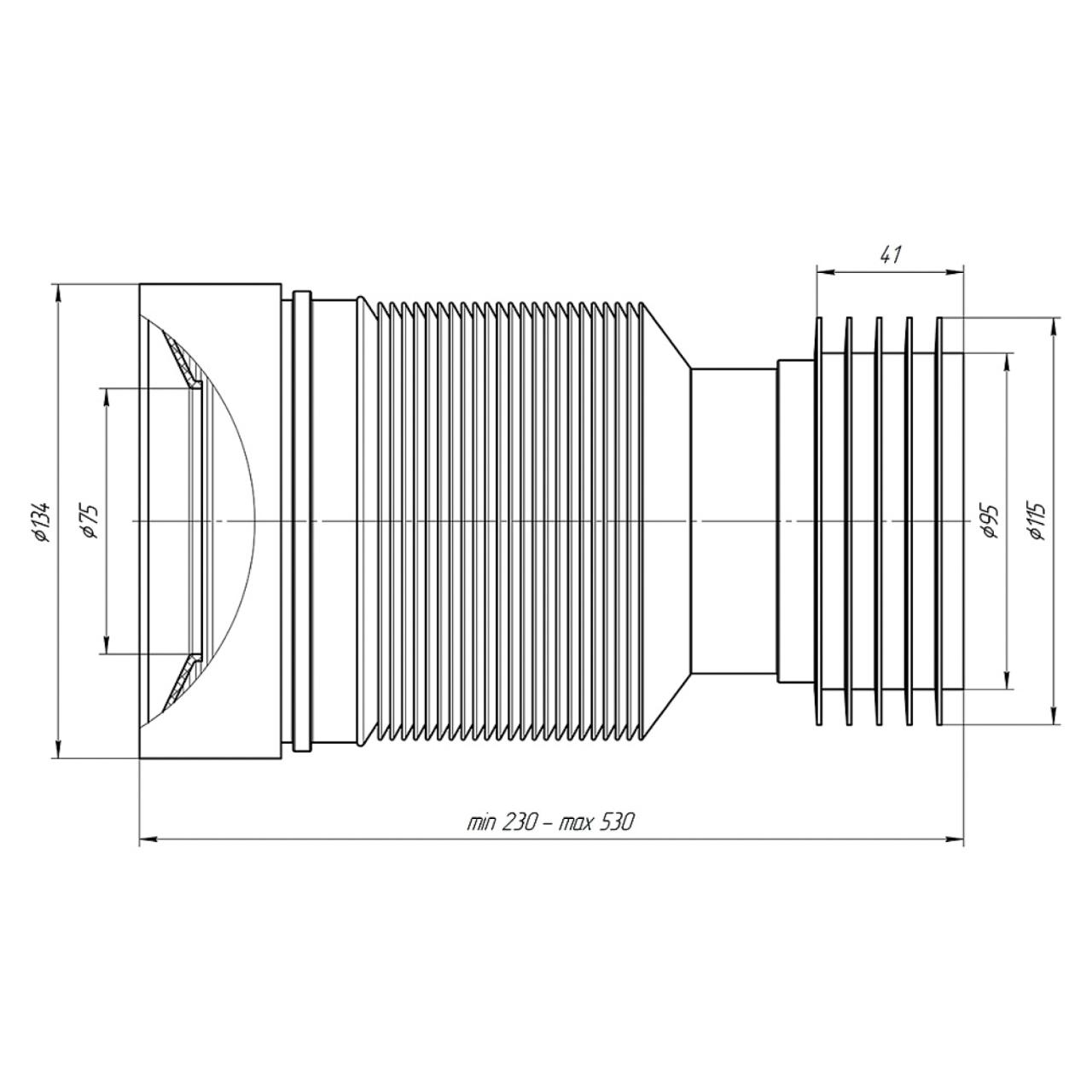 Удлинитель гибкий гофрированный для унитаза K828 выпуск 100-110 мм предназначен для присоединения унитазов к системе канализации. Диапазон длины: 230-500 мм. Кол-во шт в коробке: 20.