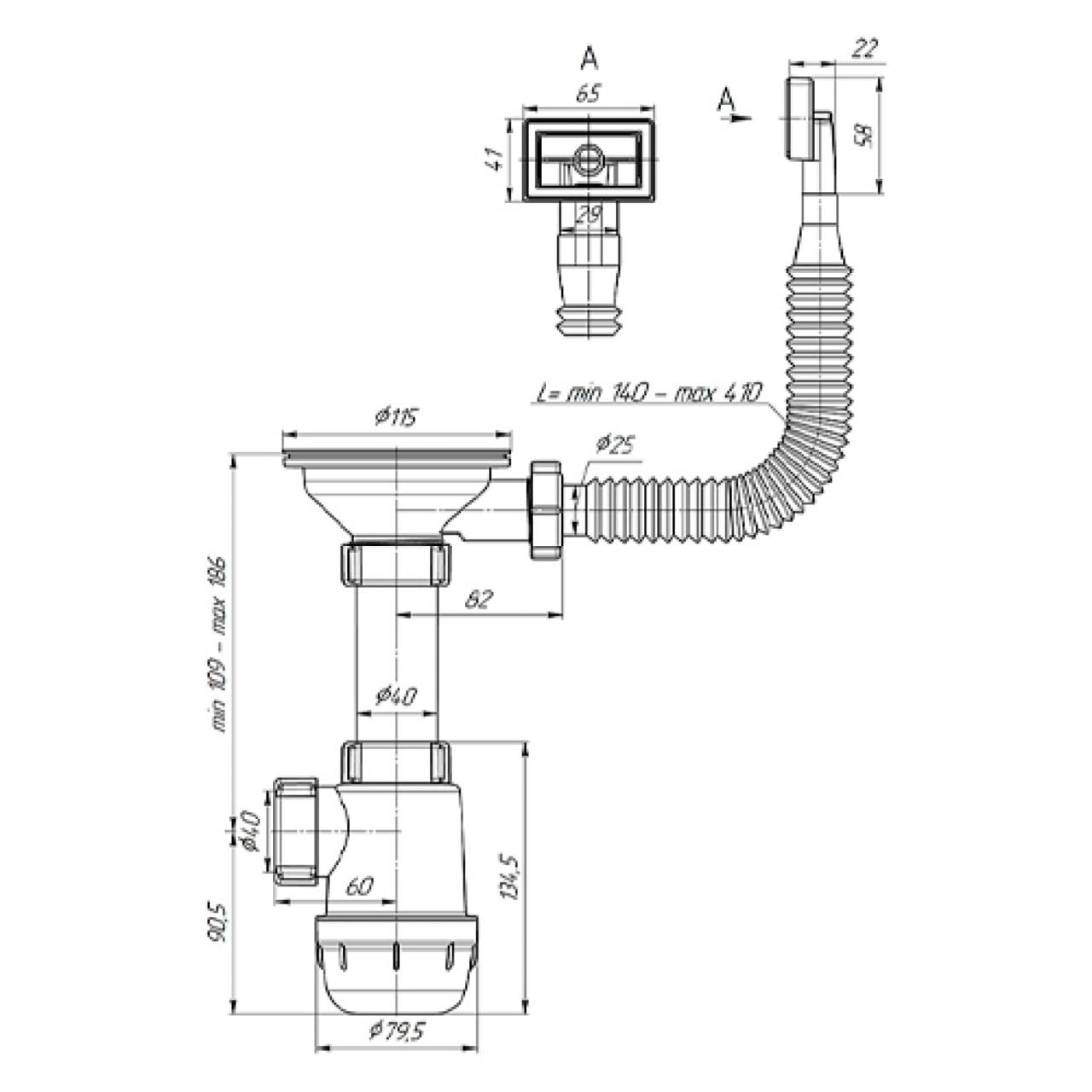 Стандартные размеры делают сифон универсальным выбором для большинства кухонных моек.