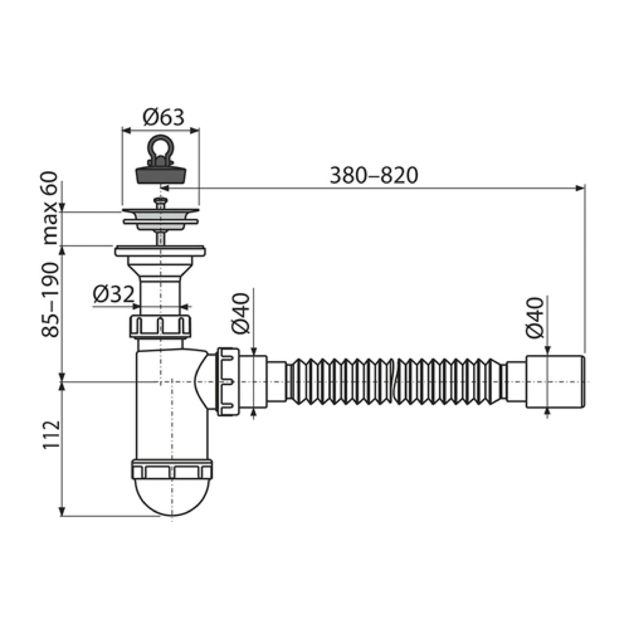 A41+A710 Сифон для умывальника d40 с нержавеющей решеткой d63