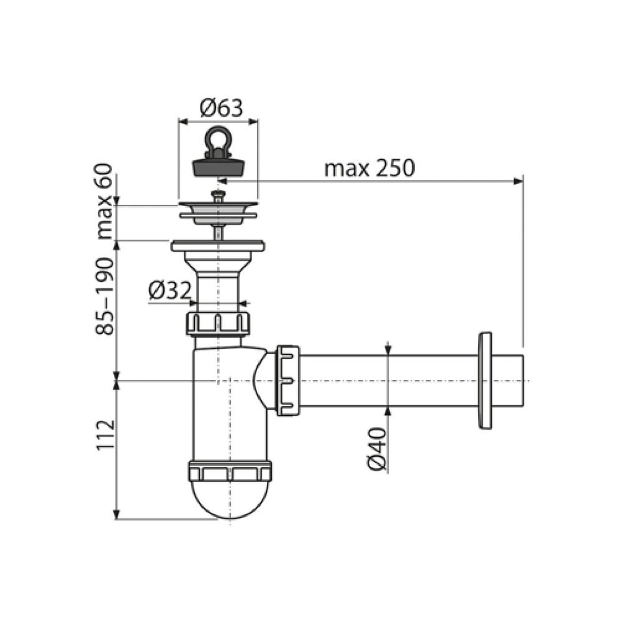 A41+A770 Сифон для умывальника Ø40 с нержавеющей peшeткой Ø63