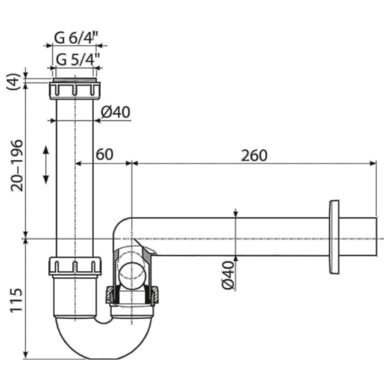 Комплектация: корпус сифона с комбинированным гидрозатвором, переходник 6/4"×5/4", обрамление пластиковое