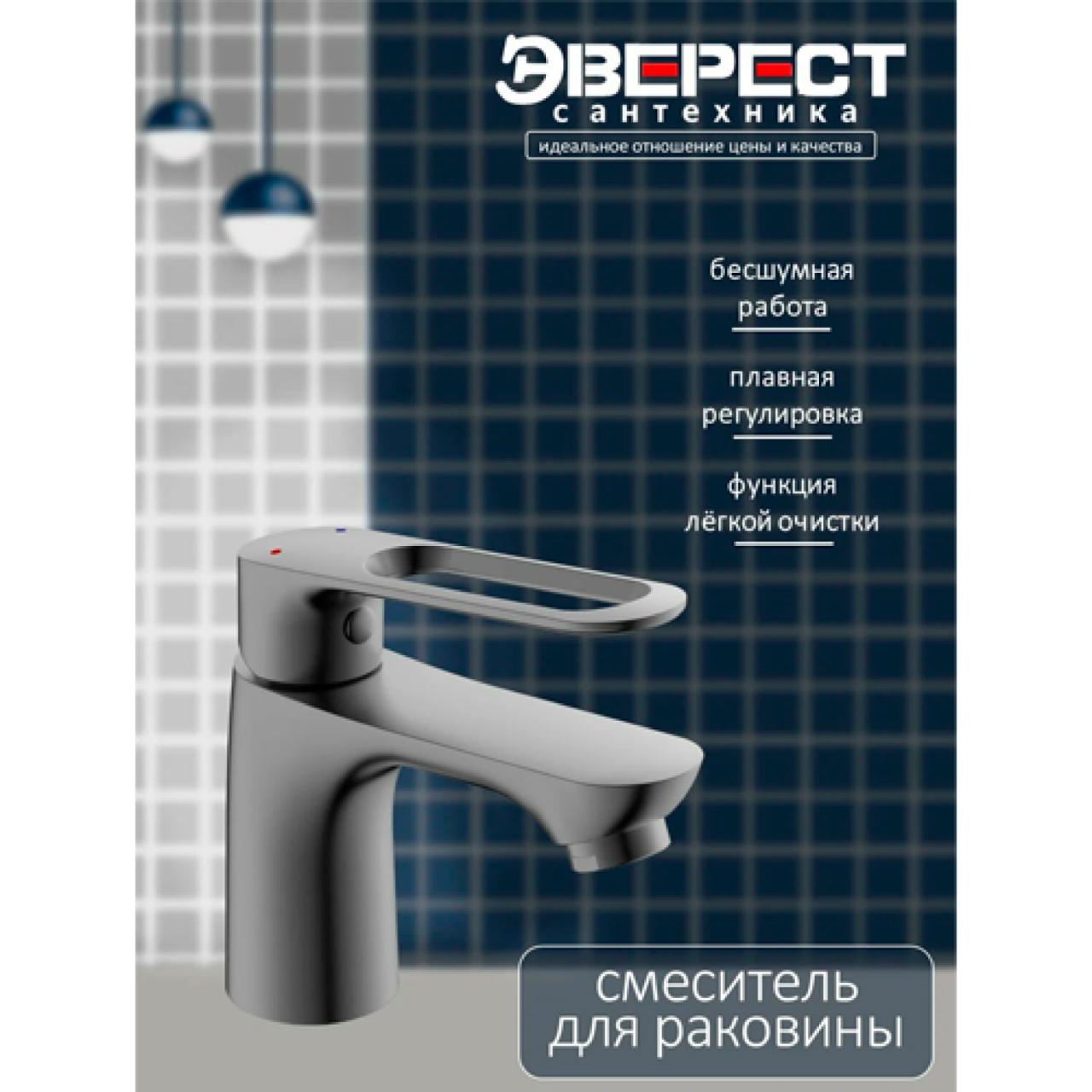 Смеситель на раковину Эверест B10-15319 изготовлен из качественных материалов. Эмалевое покрытие корпуса брезентово-серого цвета улучшает внешний вид, облегчает уход и продлевает срок службы смесителя. Излив монолитный, с аэратором для насыщения струи воды пузырьками воздуха. Пластиковая вставка аэратора в изливе не ржавеет, долго не покрывается известковым налётом и легко очищается. Для регулировки воды применяется картридж диаметром 25 мм с керамическими пластинами и увеличенным сроком службы. На раковину смеситель крепится с помощью удобного крепежа на гайке. К воде подключается двумя гибкими подводками 1/2" длиной 35 см.