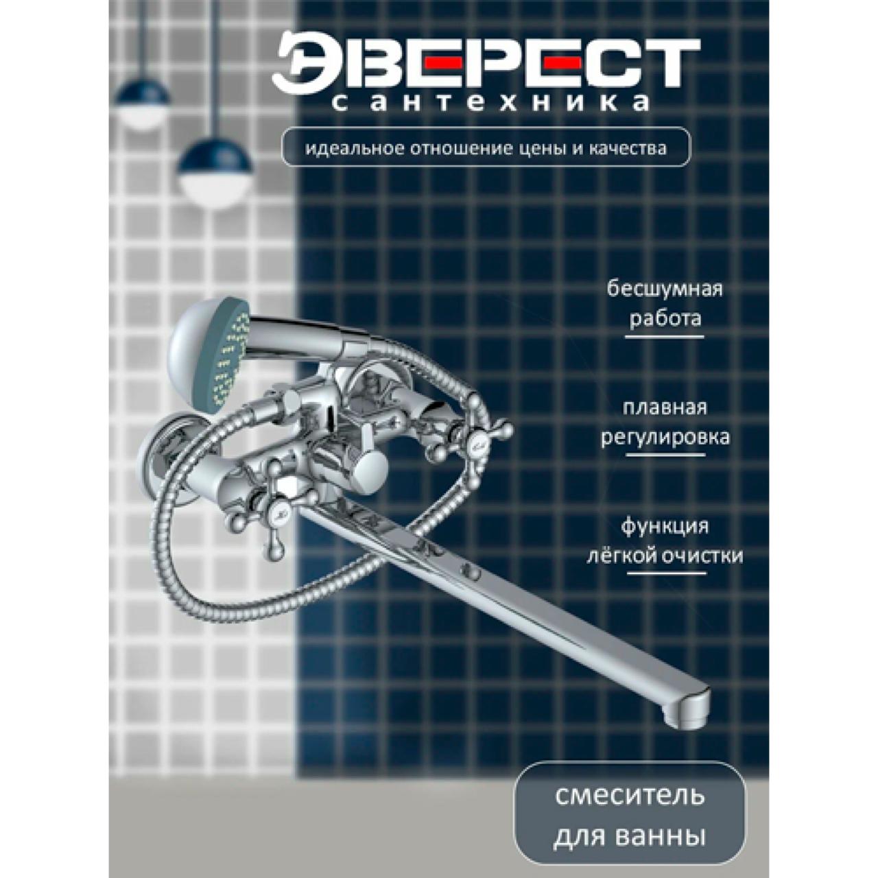 Смеситель на ванну Эверест B23-351 изготовлен из качественного материала. Хром-никелевое покрытие корпуса улучшает внешний вид, продлевает срок службы и облегчает уход за смесителем. Излив у смесителя плоский, длинный, поворотный с аэратором. Аэратор с пластиковой вставкой. Она не ржавеет, долго не покрывается известковым налётом и легко очищается или меняется. Переключатель душ-кран поворотный, в корпусе смесителя. Для регулировки воды применяются оригинальные кран-буксы с керамическими пластинами и увеличенным сроком службы. Душевой шланг в металлической хромированной оплётке 1/2"х1/2" длиной 150 см. Лейка пластиковая на 1 вид струи. Держатель душевой лейки на корпусе смесителя.