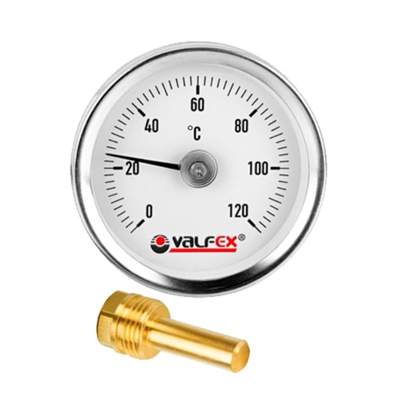 Биметаллический термометр с погружной гильзой, 63 мм, 1/2", 120°С VALFEX (100)