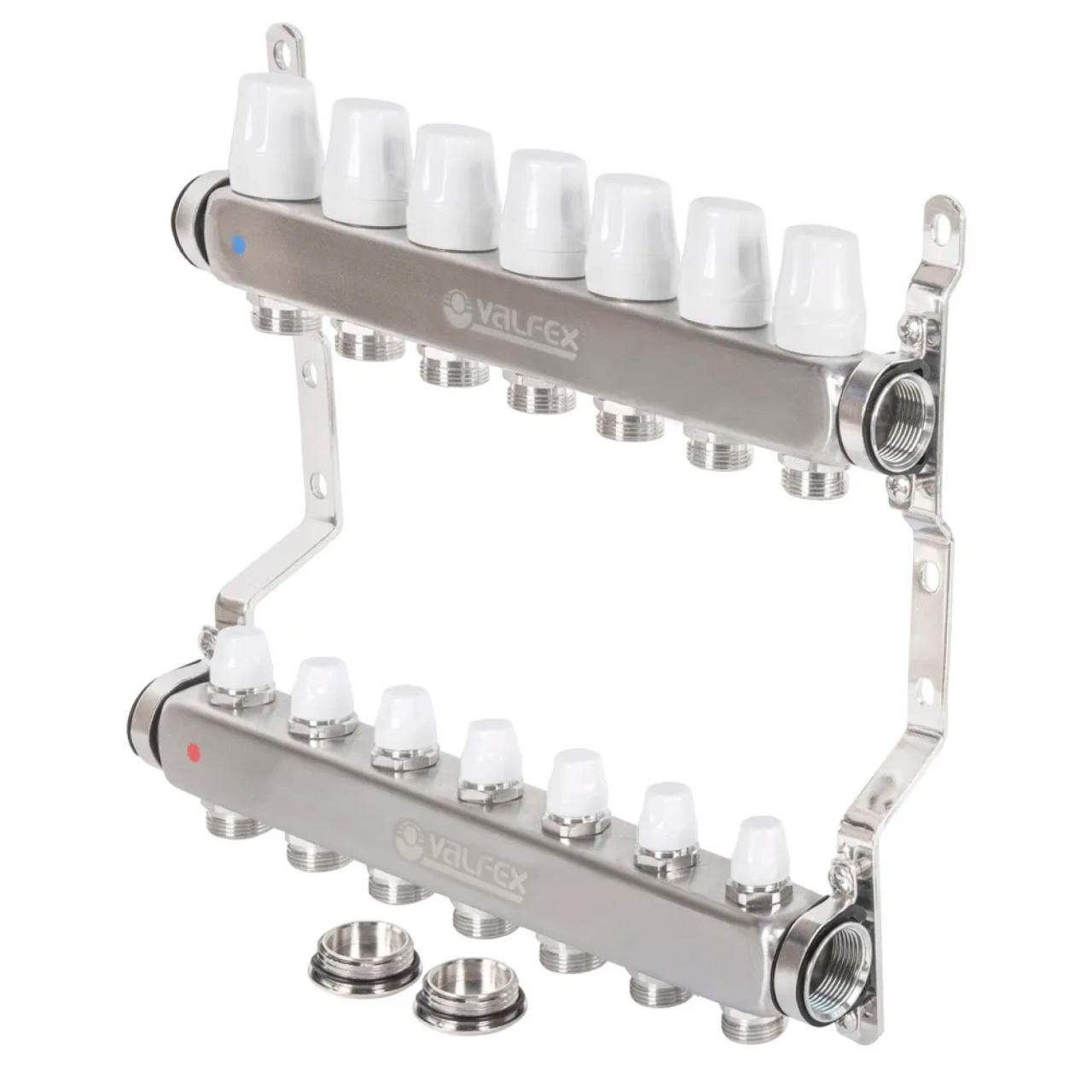 Блок колл. НЕРЖ с ручн. регулир. клап. 1"х 7 вых Евроконус 3/4" VALFEX (2) К