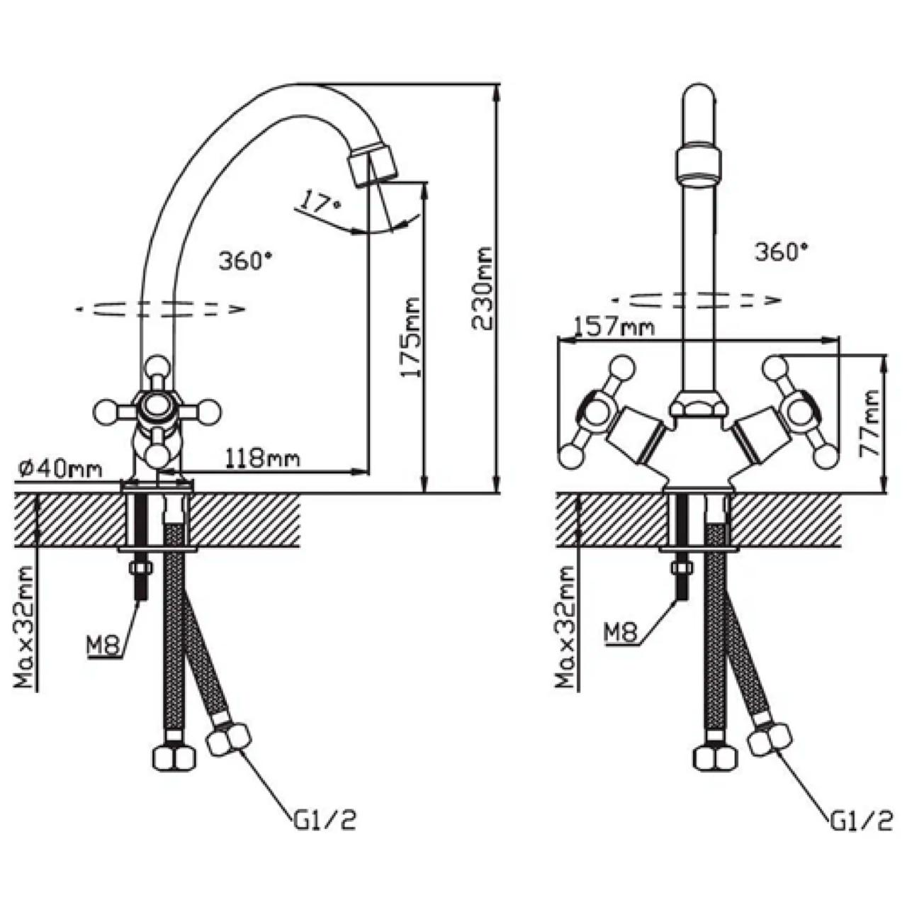 Смеситель для раковины Cronwil CB330-40 изготовлен из качественного цинкового сплава. Излив высокий, поворотный, снабжён аэратором, для насыщения струи воды пузырьками воздуха. Хром-никелевое покрытие улучшает внешний вид изделия, облегчает уход и продлевает срок службы. Для регулировки воды применяются кран-буксы 1/2" с керамическими пластинами и увеличенным сроком службы. На мойку смеситель крепится с помощью традиционного крепежа на шпильке. К воде подключается двумя гибкими подводками 1/2" длиной 35 см.
