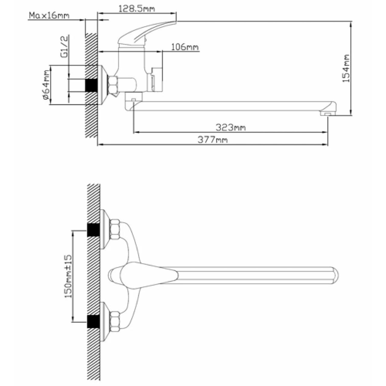 Комплектация: Смеситель, излив, крепёж, шланг, лейка, держатель лейки