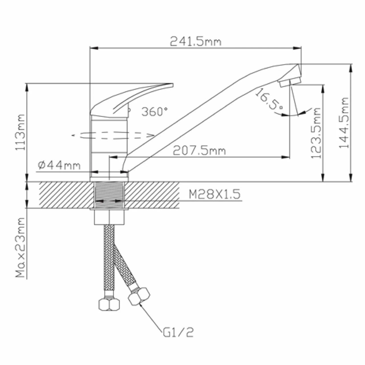 Смеситель для кухни Cronwil CD038-49 изготовлен из высококачественной латуни, что обеспечивает его прочность и долговечность. Хромированное покрытие придает изделию стильный вид и облегчает уход за ним. Смеситель оснащен поворотным изливом длиной 207 мм, который позволяет удобно регулировать направление струи воды. Аэратор на изливе насыщает струю воды пузырьками воздуха, делая ее более приятной на ощупь и визуально привлекательной. Для регулировки подачи воды используется керамический картридж диаметром 35 мм. Благодаря этому элементу, смеситель обеспечивает плавную и точную регулировку температуры и напора воды. Смеситель крепится на мойку с помощью удобного крепежа на гайке, что обеспечивает надежное и прочное соединение. Гибкая подводка 1/2" длиной 40 см позволяет легко подключить смеситель к водопроводу.