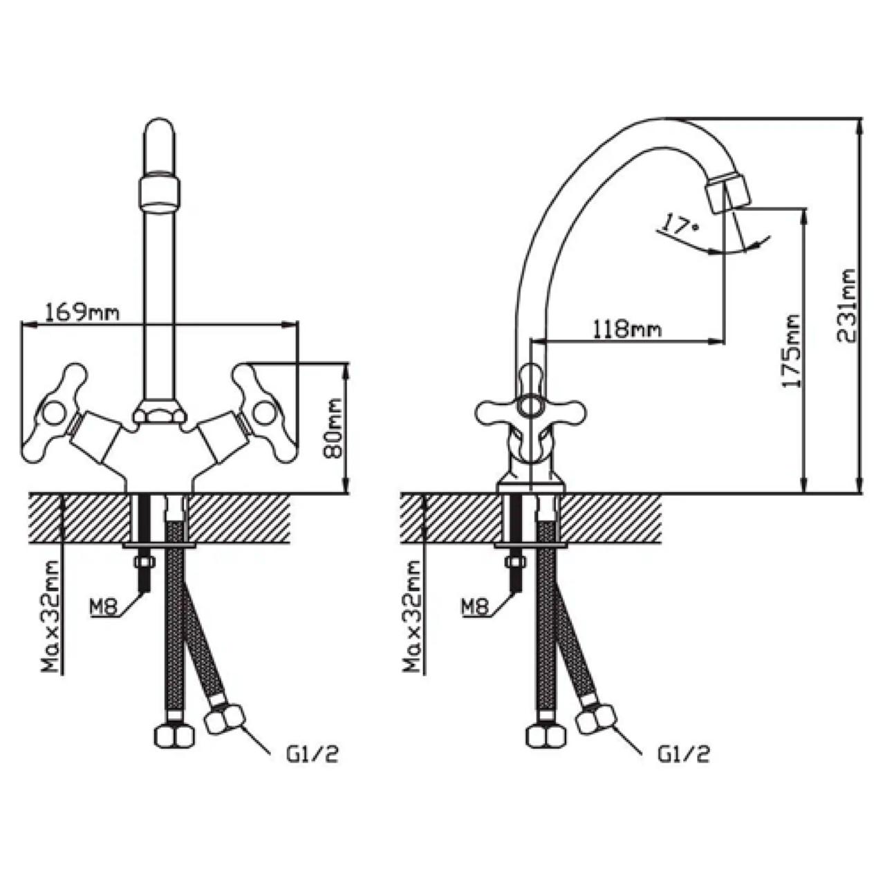 Смеситель для раковины Cronwil CD340-40 изготовлен из латуни высокого качества. Излив высокий, поворотный, снабжён аэратором, для насыщения струи воды пузырьками воздуха. Хром-никелевое покрытие улучшает внешний вид изделия, облегчает уход и продлевает срок службы. Для регулировки воды применяются кран-буксы 1/2" с керамическими пластинами и увеличенным сроком службы. На мойку смеситель крепится с помощью традиционного крепежа на шпильке. К воде подключается двумя гибкими подводками 1/2" длиной 40 см.