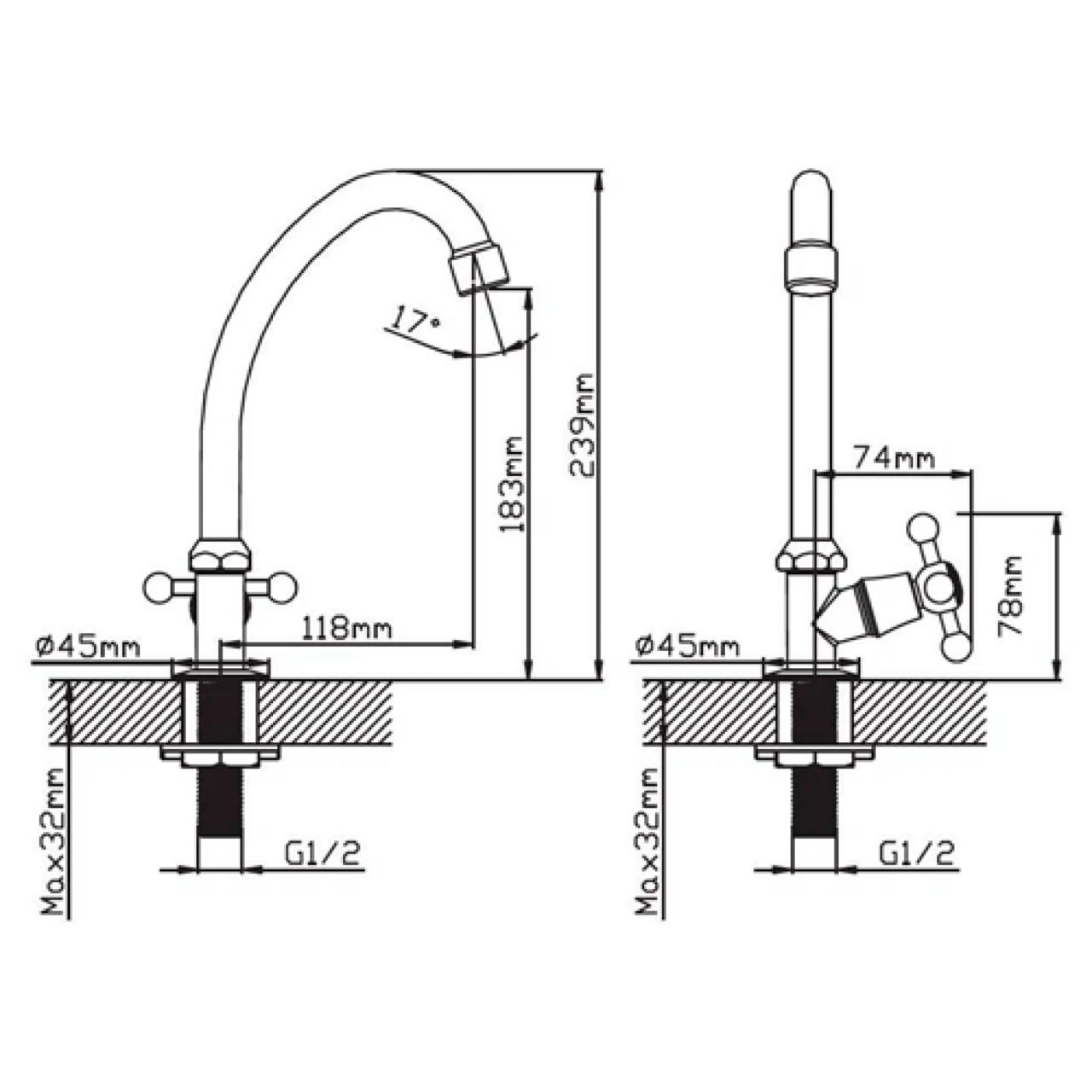 Кран на одну воду Cronwil CB330-41 - это высококачественное и стильное решение для любой кухни. Изготовленный из цинкового сплава, этот кран обеспечивает прочность и долговечность, а также сохраняет свой внешний вид на протяжении долгого времени. Хромированное покрытие придает крану элегантный вид и облегчает уход за ним. Благодаря этому покрытию, кран будет выглядеть как новый даже после длительного использования. Кран оснащен высоким поворотным изливом, который снабжен аэратором для насыщения воды пузырьками воздуха. Для регулировки подачи воды используется кран-букса с керамическими пластинами, что обеспечивает увеличенный срок службы. Кран крепится на мойку с помощью удобного крепежа на гайке, что обеспечивает надежное и прочное крепление. Подвод воды осуществляется с внешней резьбой 1/2" под гибкую подводку.
