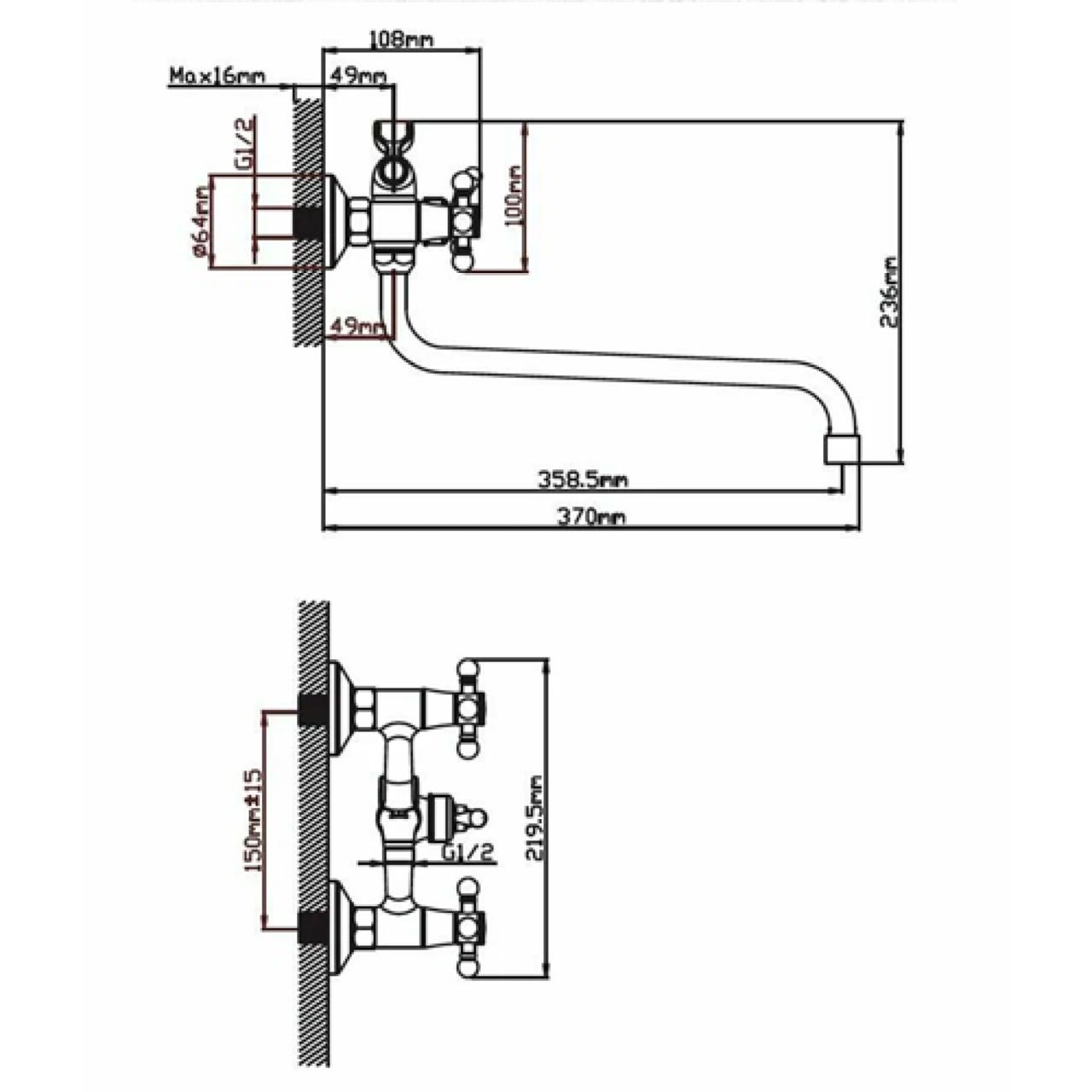 CP333-22 Смеситель CRONWIL для ванны двухвентильный, с круглым изливом