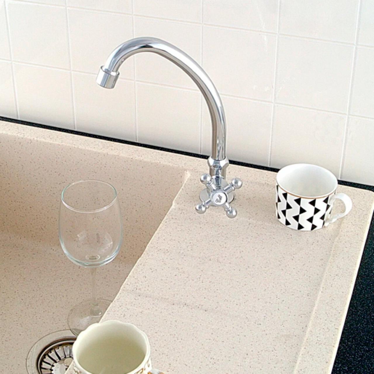 Кран на одну воду Cronwil CP333-41 отличается высоким качеством и долговечностью. Изготовлен из цинкового сплава, что обеспечивает прочность и надежность изделия. Хром-никелевое покрытие придает крану стильный вид и облегчает уход за ним, продлевая срок службы. Кран оснащен высоким изливом и аэратором, который насыщает струю воды пузырьками воздуха. Это делает использование крана более комфортным и приятным. Для регулировки подачи воды используется латунная кран-букса с керамическими пластинами. Это обеспечивает плавное и точное регулирование, а также увеличивает срок службы кран-буксы. Кран крепится на горизонтальную поверхность с помощью гайки, что обеспечивает надежное и прочное крепление. Подключение воды осуществляется через штуцер 1/2", что позволяет использовать кран с большинством стандартных систем водоснабжения. Cronwil CP333-41 имеет стильный хром-никелевый цвет, который подойдет к любому интерьеру и будет гармонично сочетаться с другими хромированными элементами. Выбирая кран на одну воду Cronwil CP333-41, вы получаете стильное, надежное и функциональное решение для вашей кухни или ванной комнаты.