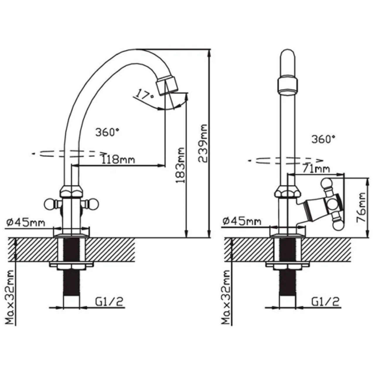 Высота излива: 240 мм