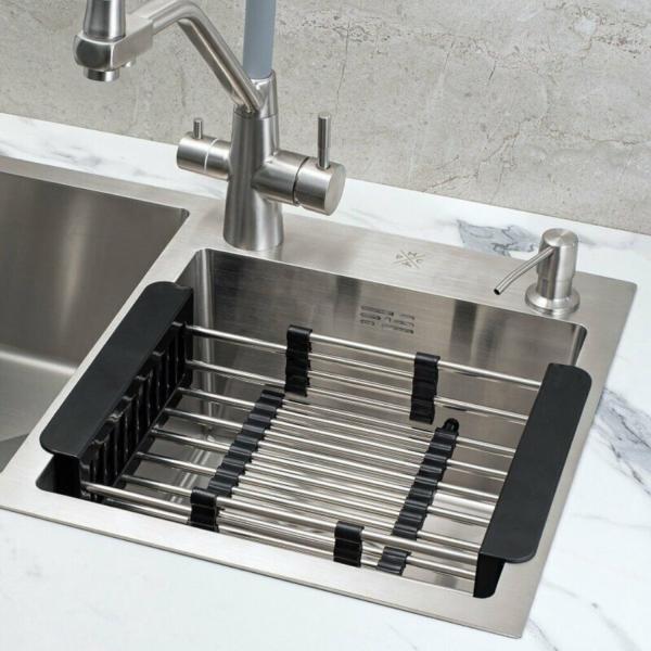 Коландер для мойки раздвижной, черный. Удобен для сушки овощей и фруктов. Регулируется для различных размеров.