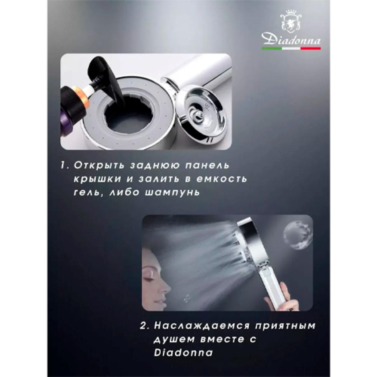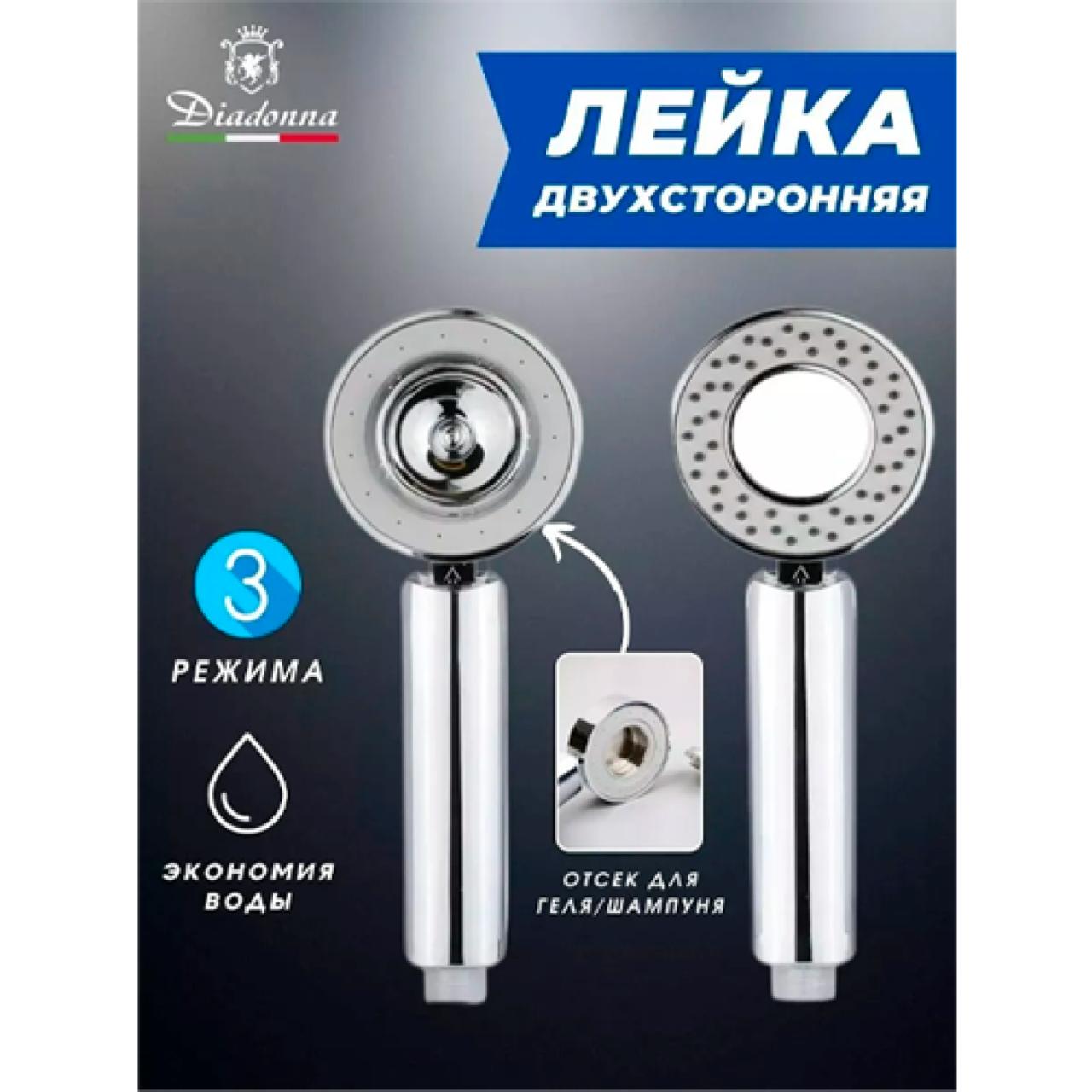 D10-19036 Душевая лейка - мультифункциональная двухсторонняя лейка для душа со спа эффектом и функцией экономии воды изготовлена из высококачественного ABS-пластика. На одной из сторон душевой лейки предусмотрен отсек для жидкого мыла/геля. Головка лейки подвижная, можно менять угол наклона. Современный эргономичный дизайн лейки вписывается в любой интерьер.