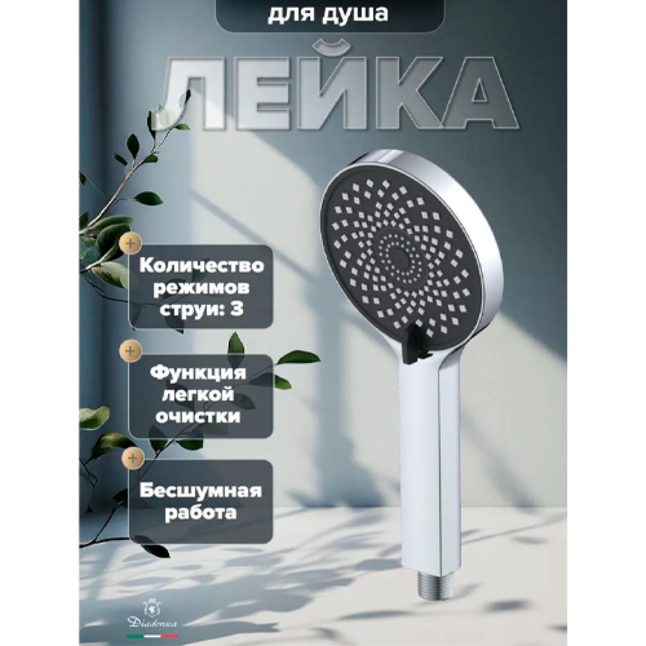Лейка для душа Diadonna D10-19038 3 режима, пластик, хром. Три режима струи обеспечивают комфорт в любых ситуациях: от расслабляющего душа до экономичного расхода воды. Современный дизайн с глянцевой поверхностью идеально впишется в интерьер любой ванной комнаты. Легкий пластиковый корпус гарантирует долговечность и простоту ухода. Компактные размеры и стандартная подводка 1/2" позволяют легко установить изделие в большинстве систем.