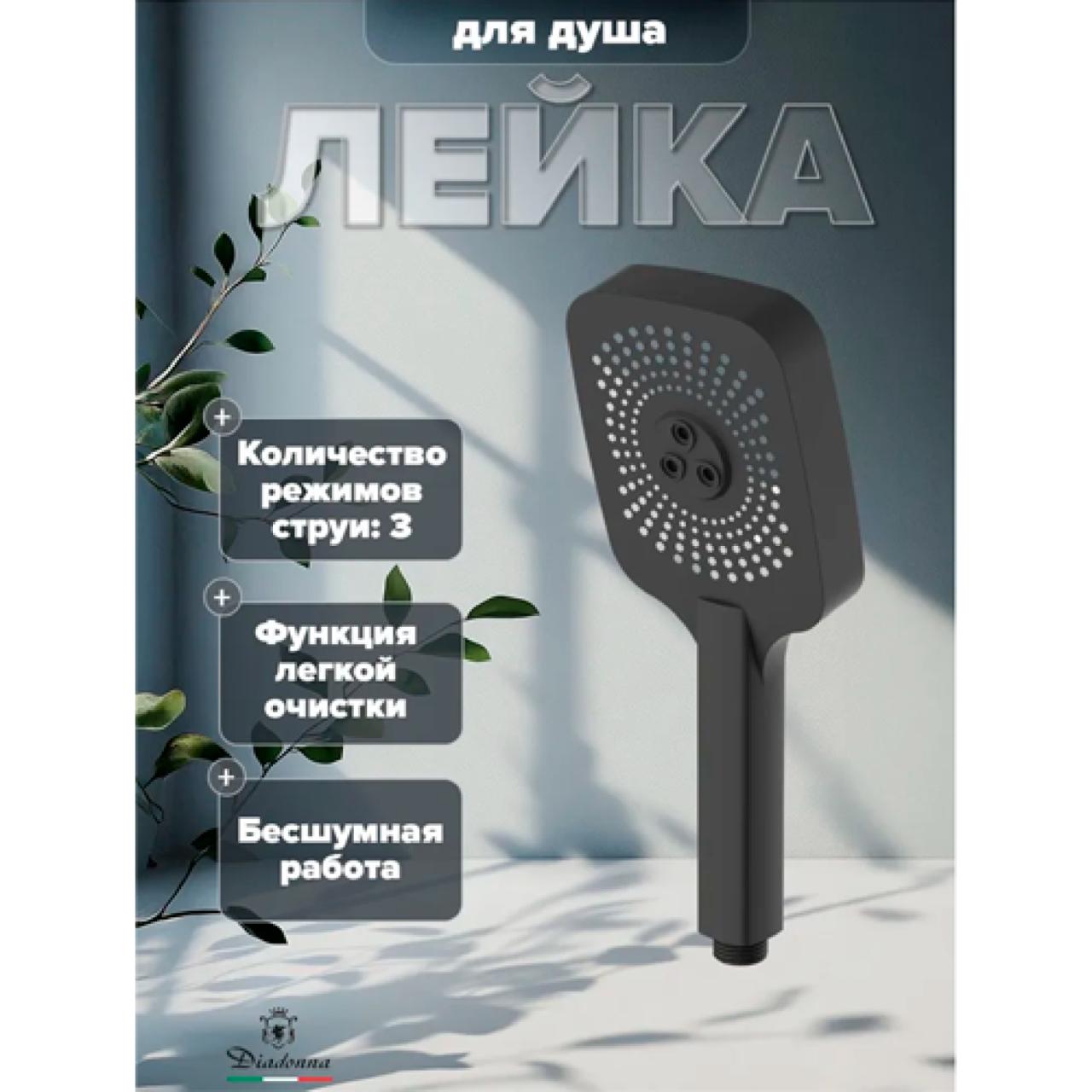 D10-19040BL Лейка для душа изготовлена из высокопрочного ABS-пластика. Цвет: черный. Количество режимов: 3. Диаметр резьбы: 1/2. Душевая лейка 3-режимная. Прочное покрытие защищает поверхность от царапин и сколов. Подойдет для использования в обычных ваннах и душевых кабинках. Гальваническое покрытие корпуса устойчиво к воздействию химических средств.