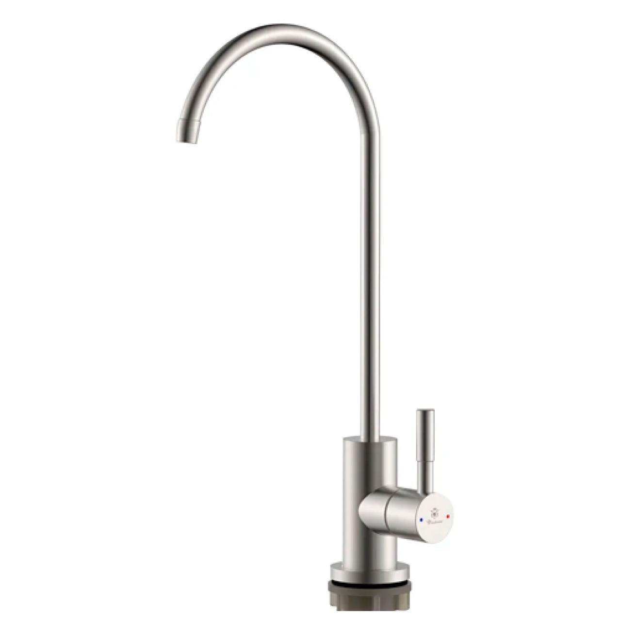 Кран для фильтра питьевой воды Diadonna D13-0005S - выполнен из нержавеющей стали, что гарантирует долговечность и стойкость к коррозии, обеспечивая комфортное использование на протяжении многих лет. Высокий излив позволяет легко наполнять даже крупные емкости, а его лаконичный дизайн прекрасно впишется в любой интерьер на кухне.