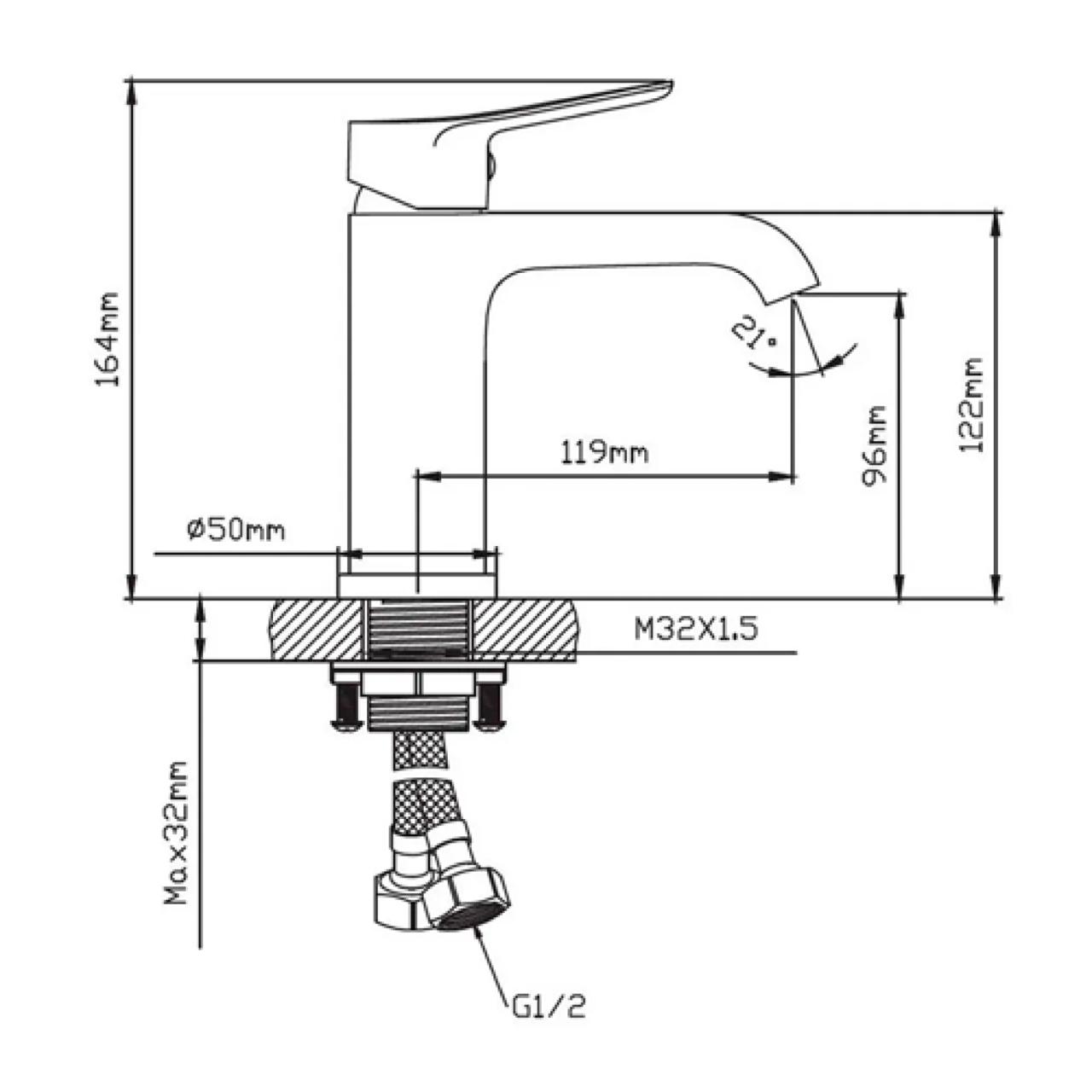 Комплектация: смеситель для раковины, картридж керамический 35 мм, гибкая подводка 40 см - 2 шт, крепление: гайка, паспорт изделия