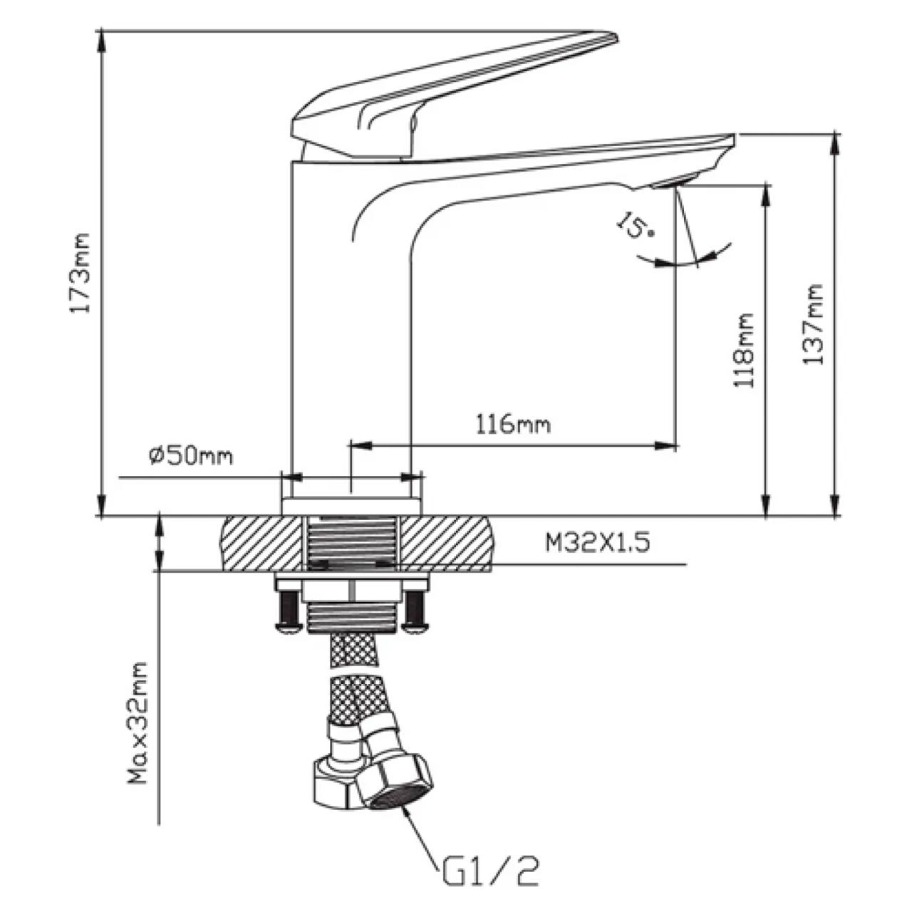 Комплектация: смеситель для раковины, картридж керамический 35 мм, гибкая подводка 40 см - 2 шт, крепление: гайка, паспорт изделия