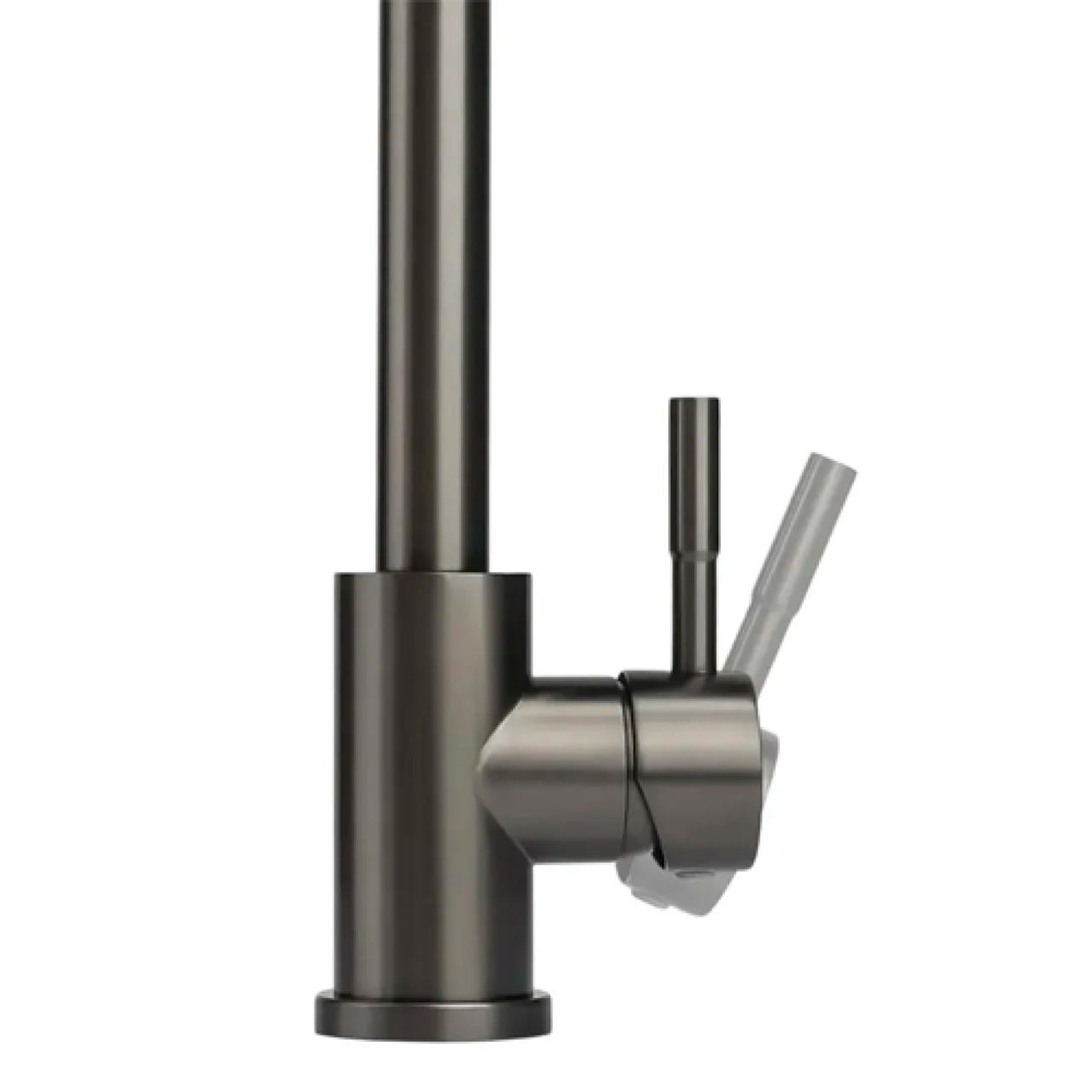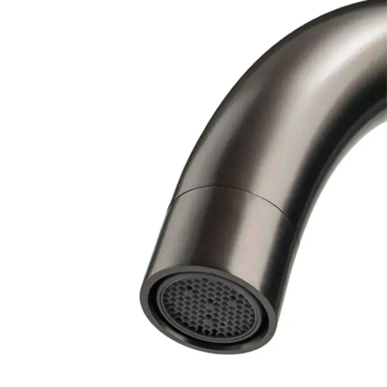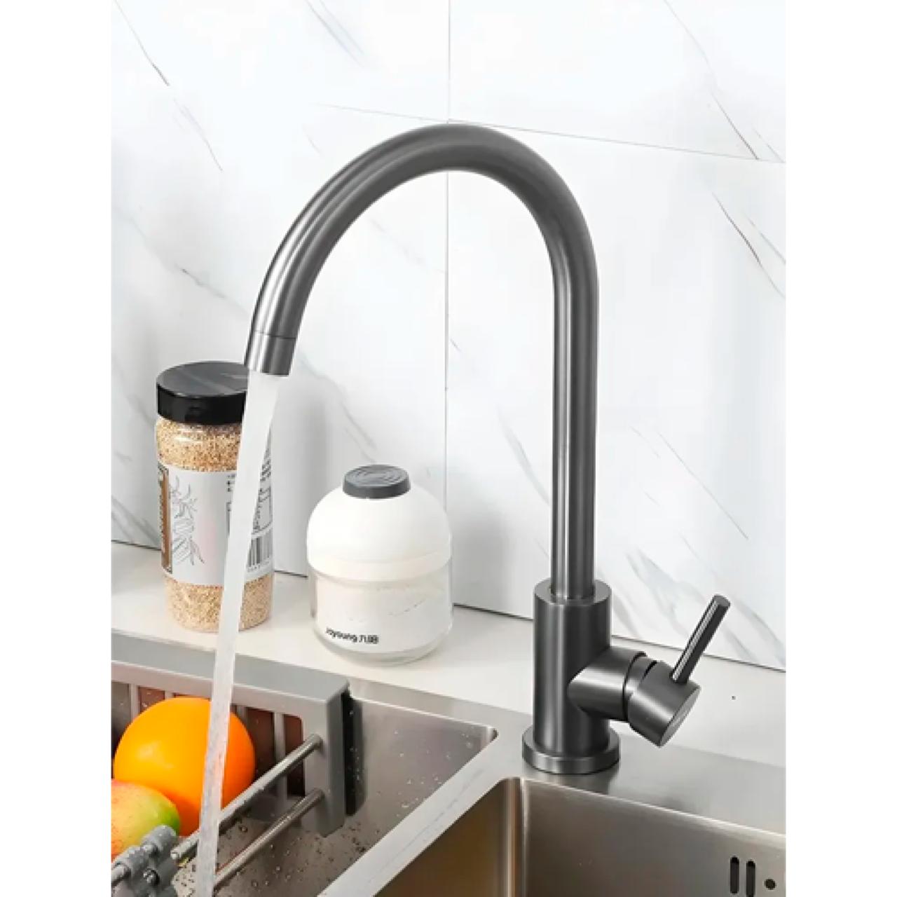 Смеситель для кухни Д46-0003QH с длинным изливом изготовлен из качественной нержавеющей стали. Цвет серый графит/Оружейная сталь придает ему элегантный и современный вид. Для крепления смесителя для раковины используется гайка, обеспечивающая надежную фиксацию. Кухонный смеситель на раковину оснащен керамическим картриджем размером 35 мм, который обеспечивает плавное и надежное регулирование потока воды. Длина гибких подводок составляет 40 см, что. Кран с поворотным изливом отлично подойдет для кухонной мойки, в силу своей практичности и высокого гусака, что упрощает набор воды в большие и высокие емкости. А стильный дизайн сделает любой интерьер лаконичным и красивым.