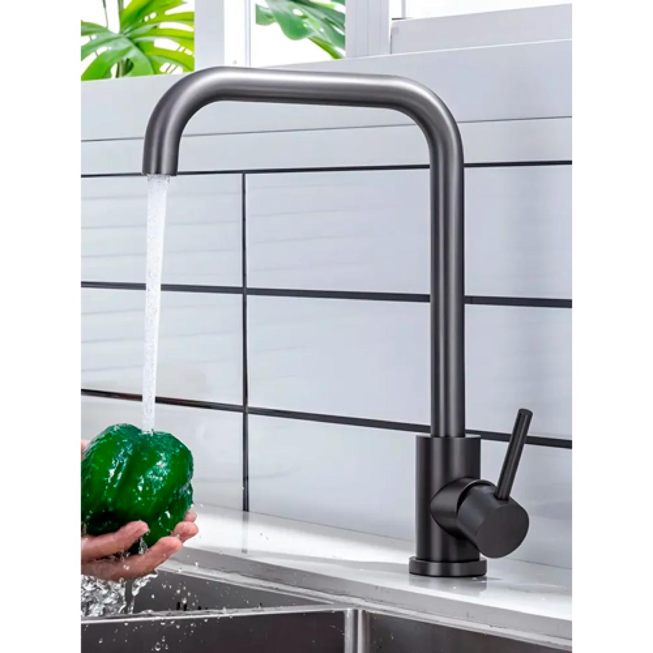 Д46-0004QH Смеситель для кухни с длинным поворотным изливом изготовлен из высококачественной нержавеющей стали. Цвет серый графит придает ему элегантный и современный вид. Для крепления смесителя на раковине используется гайка, обеспечивающая надежную фиксацию. Смеситель кухонный оснащен керамическим картриджем размером 35 мм, который обеспечивает плавное и надежное регулирование потока воды. Длина гибких подводок составляет 40 см. Этот смеситель отлично подойдет для мойки в силу своей практичности и высокого гусака, что упрощает набор воды в большие и высокие емкости. А стильный дизайн сделает любой интерьер лаконичным и красивым.