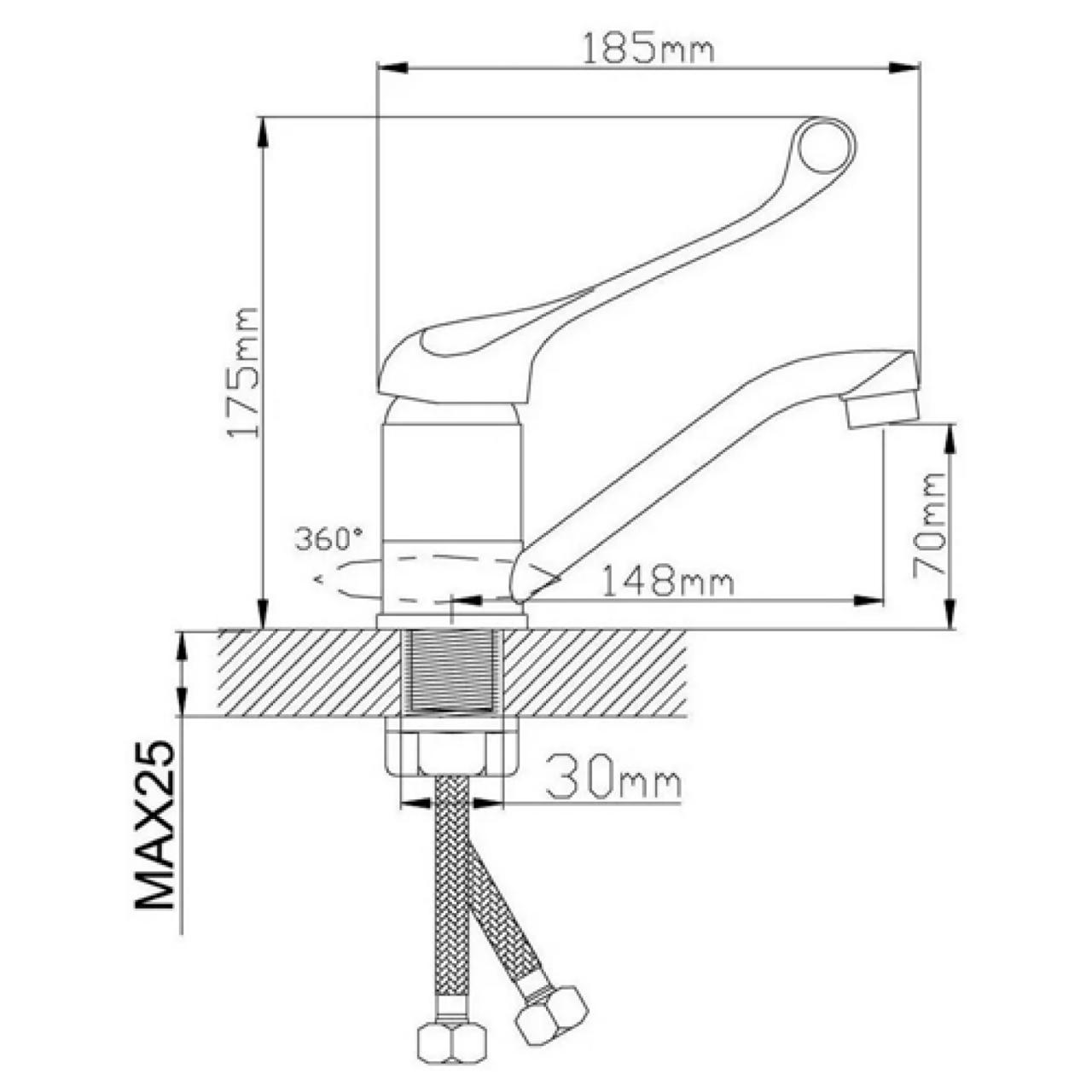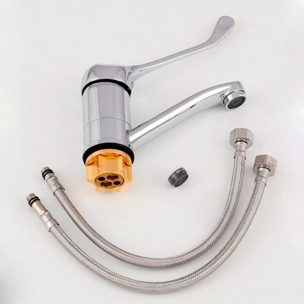 Смеситель для раковины с коротким изливом с хирургической ручкой