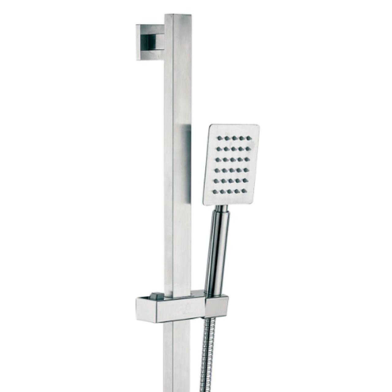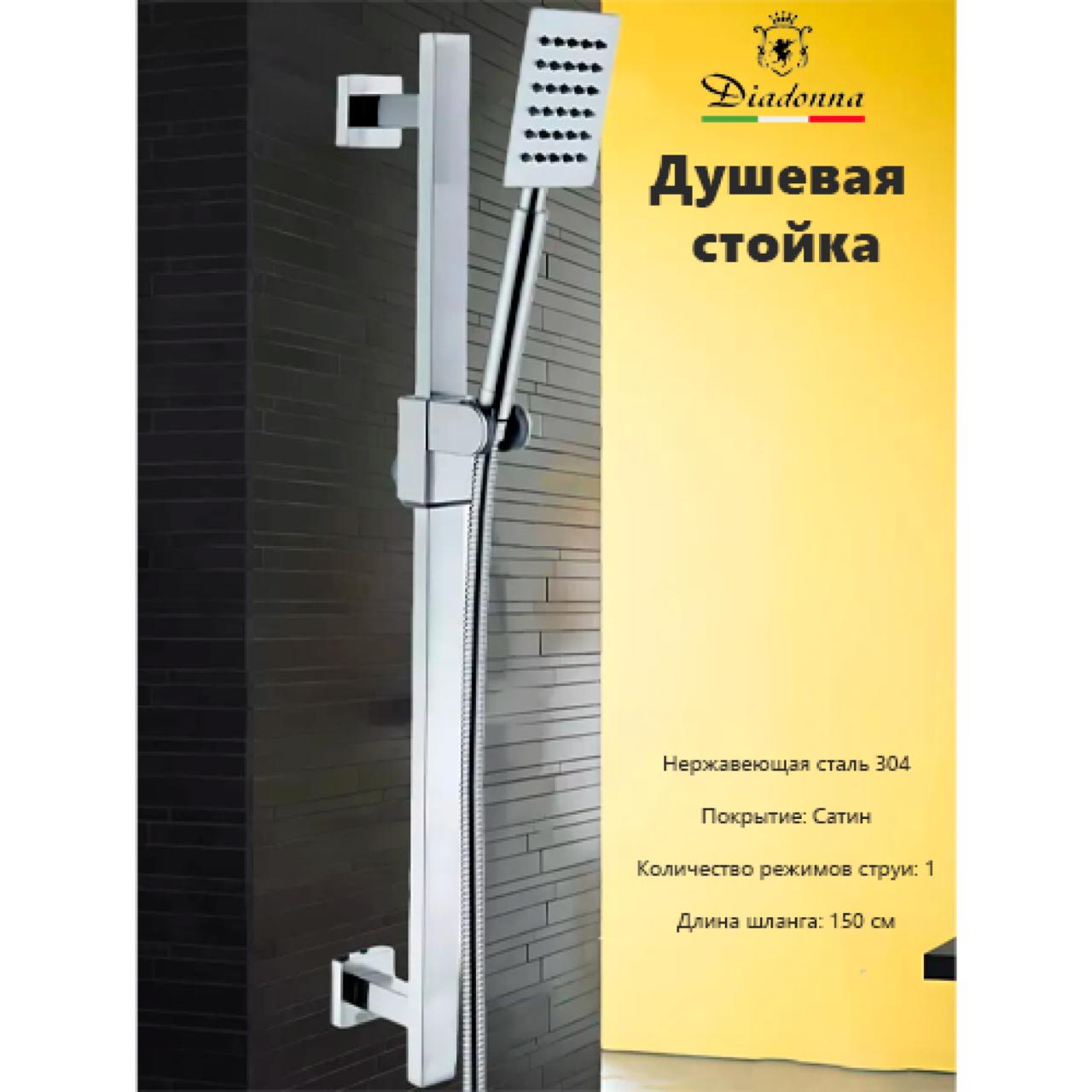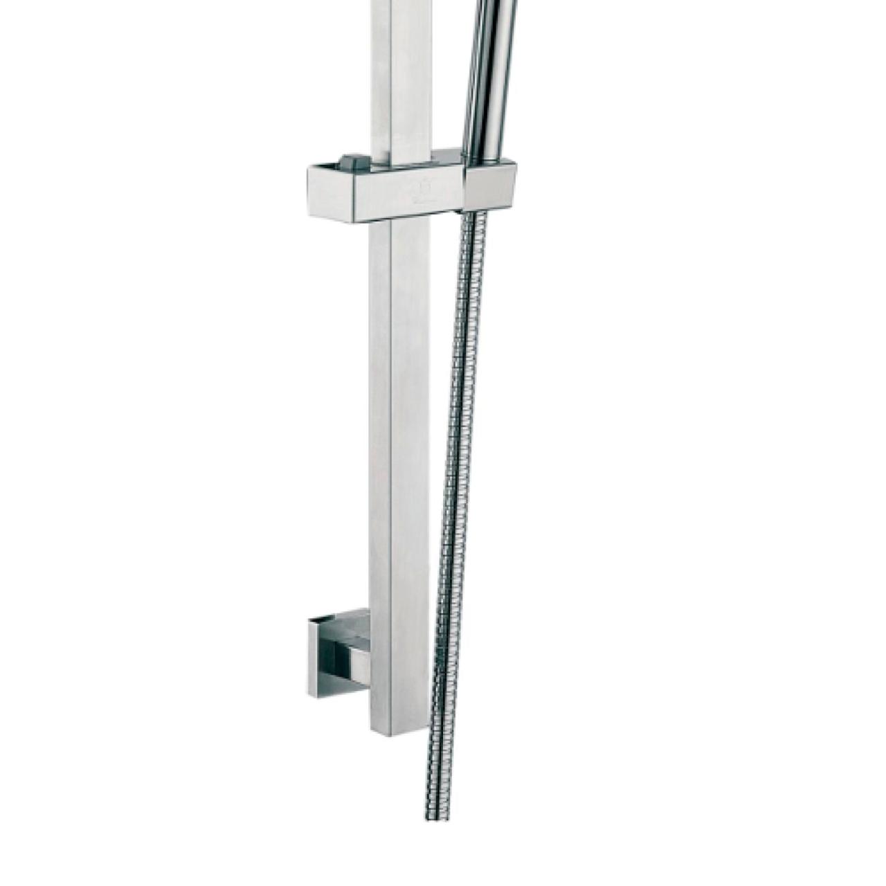 Д64-0130S Душевая стойка в комплекте со шлангом для душа и лейкой для душа. Регулируемый держатель для душевой лейки. Душевая лейка 1 функциональная. Штанга для душа в ванную комнату без мыльницы и с держателем для ручного душа. Держатель для душа настенный - удобное и функциональное устройство для повышения комфорта гигиенических водных процедур. Стойка для душа в ванную позволяет легко зафиксировать лейку на удобной высоте, оставляя руки свободными. Душевой гарнитур подходит для установки в кабинах и на стене над стационарными ваннами. Держатель для шланга душа предполагает стационарное крепление. Матовая стойка для душа с металлической лейкой и гибким шлангом с сатиновым покрытием.
