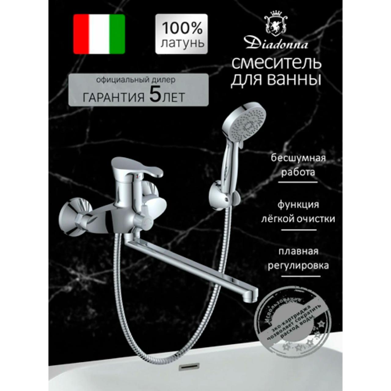 Смеситель на ванну Diadonna D80-222100 отличается своим длинным плоским изливом, который обеспечивает удобство и комфорт при использовании. Смеситель оснащен картриджем 40 мм, что гарантирует плавность и точность регулировки температуры и напора воды. Смеситель Diadonna D80-222100 выполнен в стильном и современном дизайне, который будет гармонично смотреться в любом интерьере. Хромированное покрытие придает изделию блеск и защищает его от коррозии. Смеситель оснащен душевым набором, что позволяет использовать его не только для ванны, но и для душа.