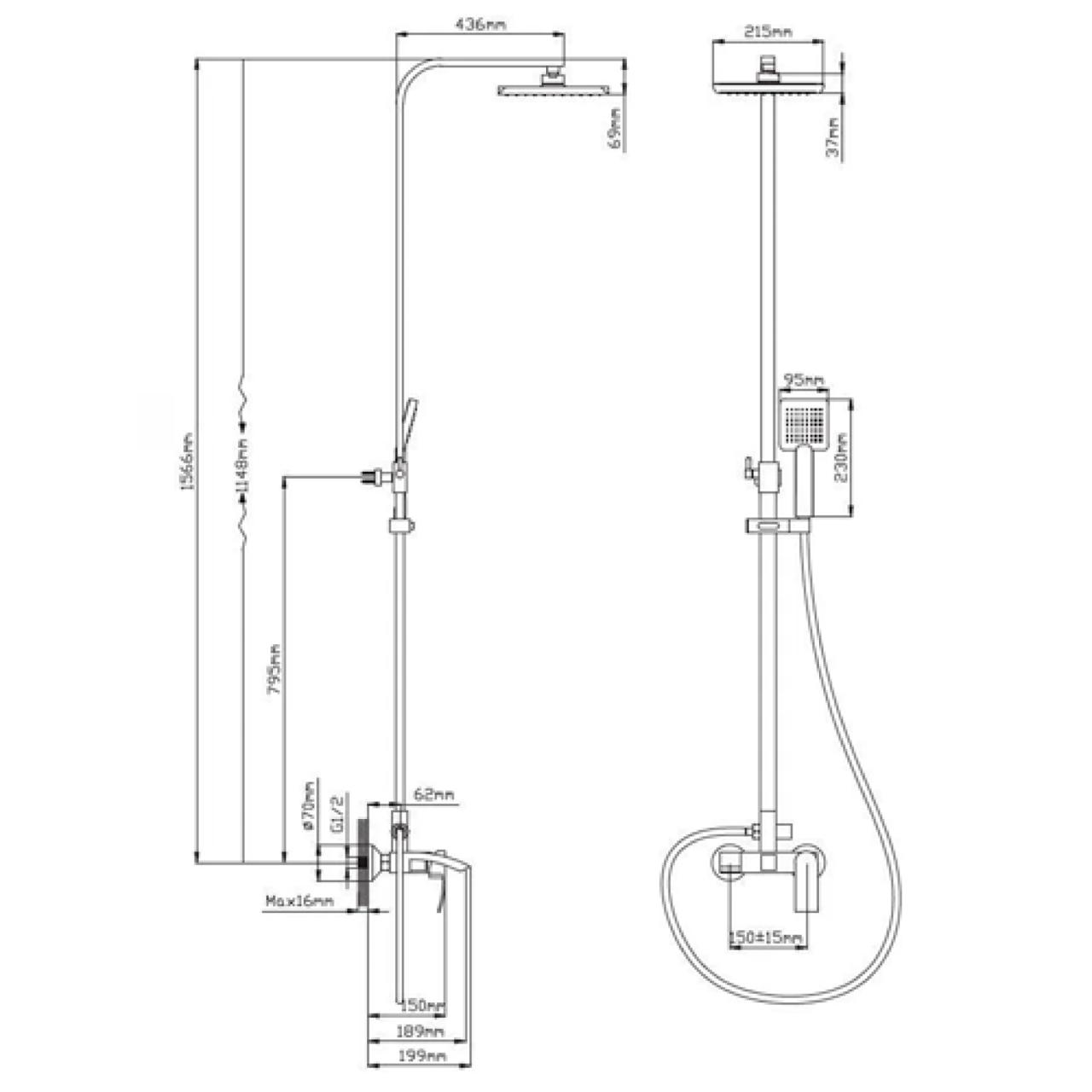 Душевая стойка Diadonna D80-335103 это высококачественный продукт по невысокой цене. Хром-никелевое покрытие придаёт изделию совершенный внешний вид, за ним очень легко ухаживать и оно служит много лет. Смеситель стойки выполнен из латуни с высоким содержанием меди. Для регулировки потока воды применяется картридж диаметром 35 мм с керамическими пластинами увеличенным сроком службы. Излив короткий, монолитный. Переключатель на излив на смесителе. Переключатель верхней и ручной лейки смонтирован на штанге над смесителем. Верхний душ квадратный 215х215 мм, поворачивается на шарнире. Ручная лейка прямоугольная на шланге длиной 150 см и имеет один режим струи. Держатель лейки может перемещаться и фиксироваться на штанге и менять наклон лейки. Верхняя часть штанги телескопическая, что позволяет регулировать высоту верхнего душа.