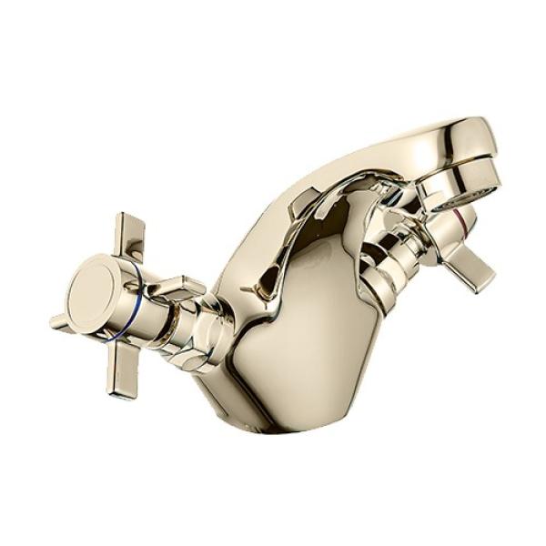 Компактный монолитный смеситель для умывальника, выполнен из качественной латуни. Вес: 1.1 кг.