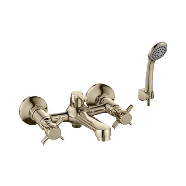 Смеситель для ванной с коротким изливом, выполненный из латуни с хромированным покрытием. Вес: 2.1 кг.