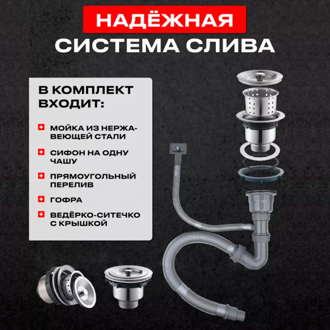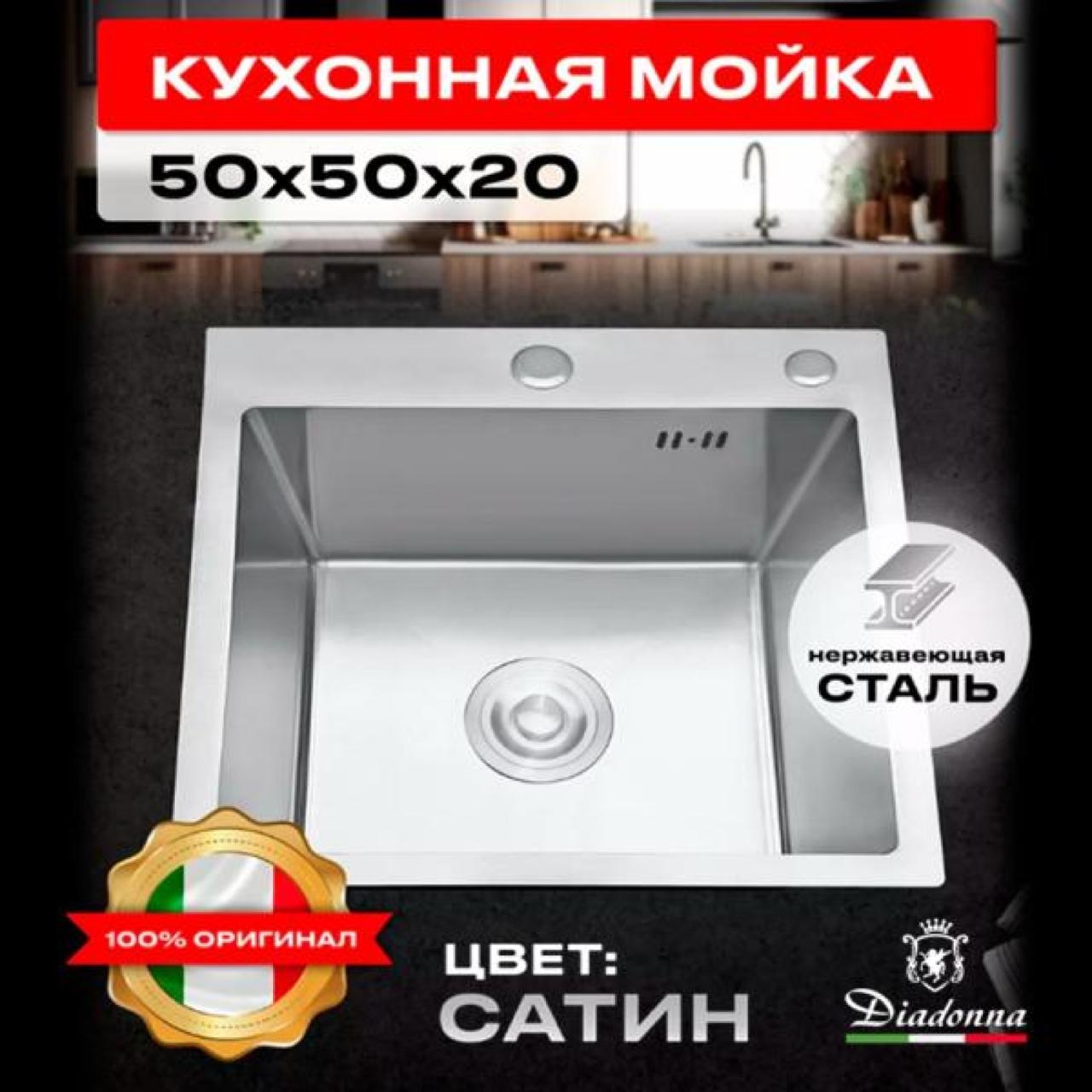 Мойка для кухни с сифоном. Кухонная мойка нержавейка цвет сатин Diadonna DS5050 изготовлена из нержавеющей стали SUS304 толщиной от 1 до 3 мм. Химический состав и свойства раковины нержавейки делают марку 304 наиболее подходящей для применения в пищевой промышленности. Она показывает высокие характеристики коррозийной стойкости в агрессивных средах. Шумоизоляция, нанесенная путем напыления, позволяет значительно снизить звук от потока воды. Размер врезной мойки для кухни: ширина 50 см, глубина 50 см, высота 22 см. Размер мойки для раковины из нержавейки глубокой чаши: ширина 45 см, глубина 40 см, высота 20 см. Минимальный размер отверстия в столешнице для врезной установки: ширина 47 см, глубина 48 см. Материал сатиновой мойки выдерживает высокие и низкие температуры и легко чистится от загрязнений.