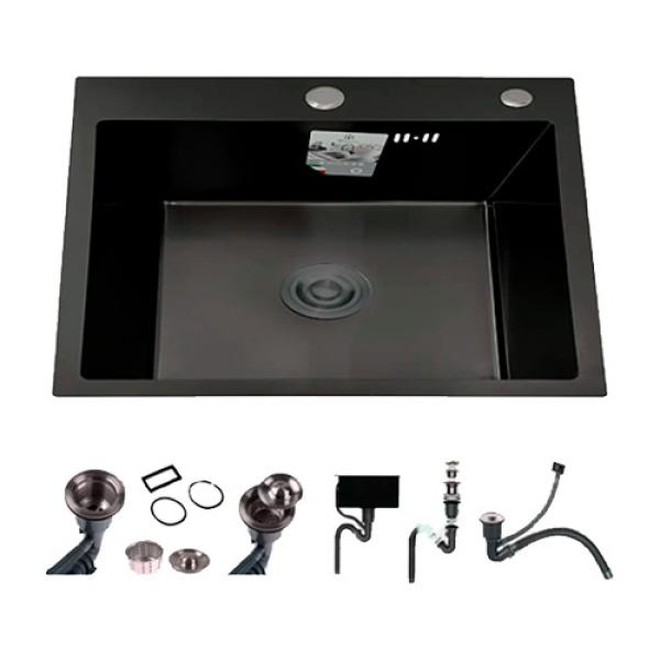 Многофункциональная кухонная мойка из нержавеющей стали c PVD покрытием. Размеры 500×500×200 мм. Толщина стали: Верх-3.0 мм, чаша 0,8 мм Вес: 7 кг.