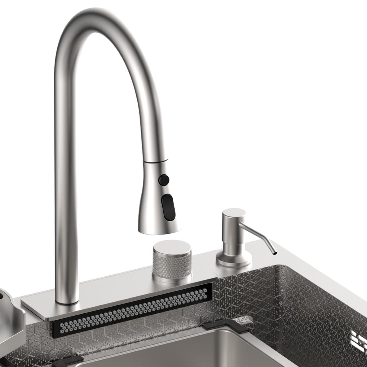 Смеситель: Нержавеющая сталь с вытяжным шлангом- 150 см