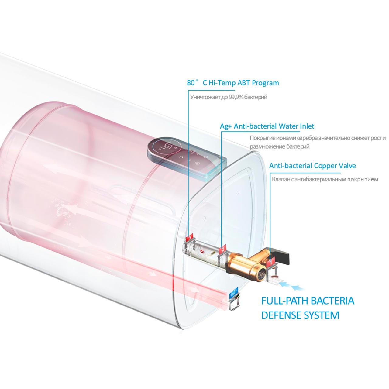 Серия OCEAN - Высокопроизводительный СУХОЙ нагревательный элемент; УДАЛЕННОЕ УПРАВЛЕНИЕ ЧЕРЕЗ ПРИЛОЖЕНИЕ SmartHome Благодаря встроенному Wi-Fi модулю; Прямоугольная форма бака; Внутренний резервуар покрыт слоем сапфировой эмали с добавлением ионов Ti+; Система защиты ShowerSafe SYSTEM- Зашита от избыточного давления вилка с заземлением и УЗО на шнуре, защита от перегрева, защита от замерзания; OptiSense DISPLAY- панель управления Smart Color. Универсальный монтаж.