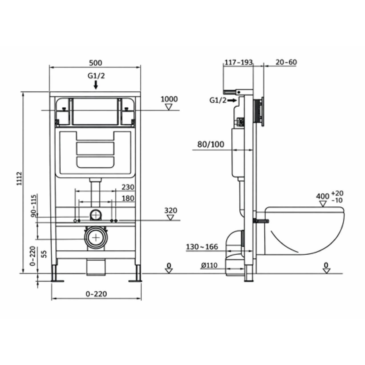 Инсталляция Comfort Factor с белой кнопкой и полной комплектацией для монтажа