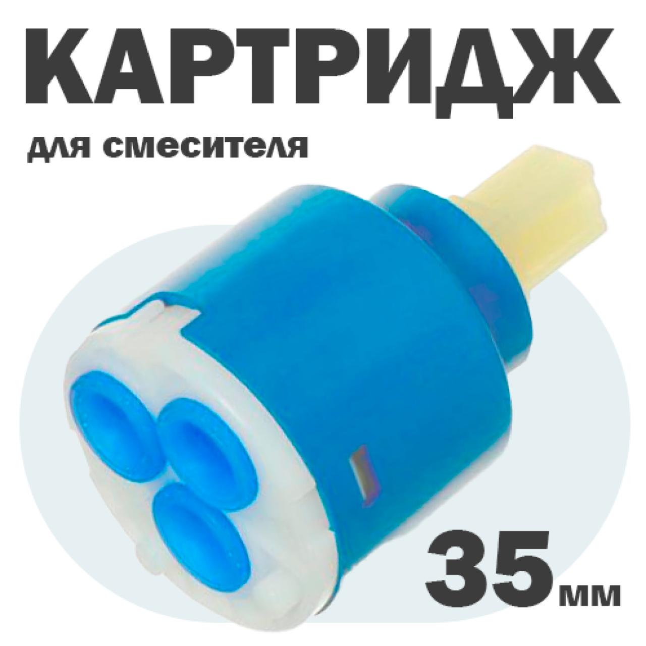 Картридж для смесителя диаметром 35 мм. Керамические пластины обеспечивают плавный ход ручки и устойчивы к износу.