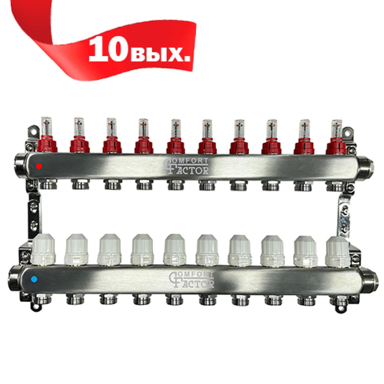 Коллекторная группа CF нерж сталь 10 вых. в сборе с расходомерами и термостатическими клапанами