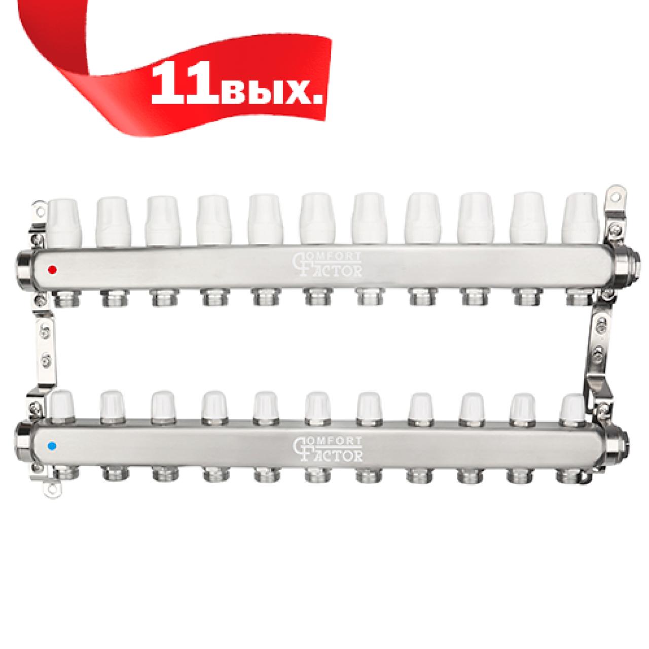 Коллекторная группа из нержавеющей стали с 11 выходами. В сборе с регулирующими и балансировочными клапанами.