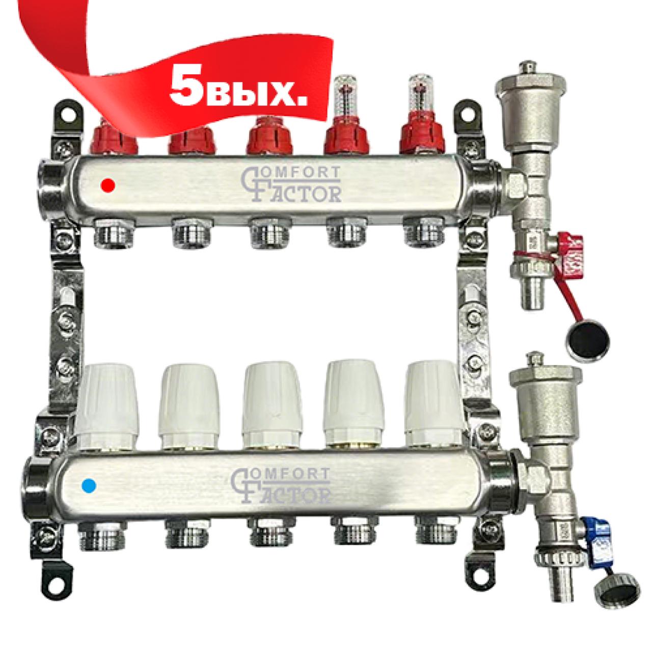 Коллекторная группа CF нерж сталь 5 вых. в сборе с автоматическим воздухоотводчиком, расходомерам
