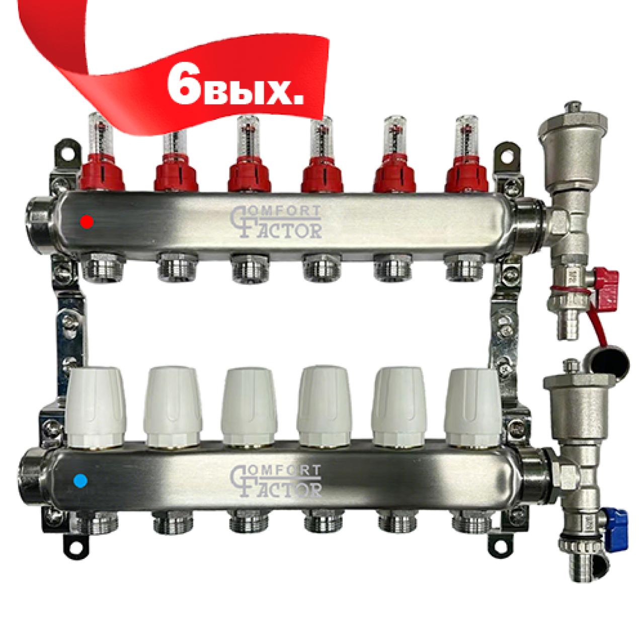 Коллекторная группа CF нерж сталь 6 вых. в сборе с автоматическим воздухоотводчиком, расходомерам