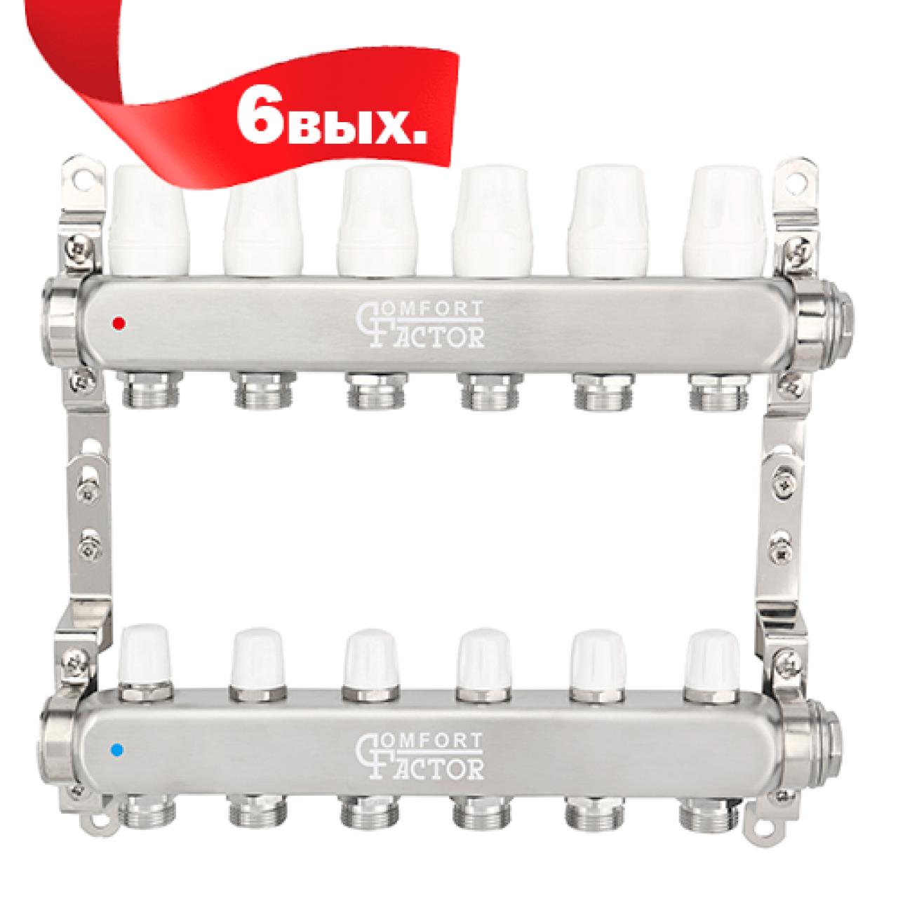 Коллекторная группа CF нерж сталь 6 вых. в сборе с регулирующими и балансировочными клапанами MFD6