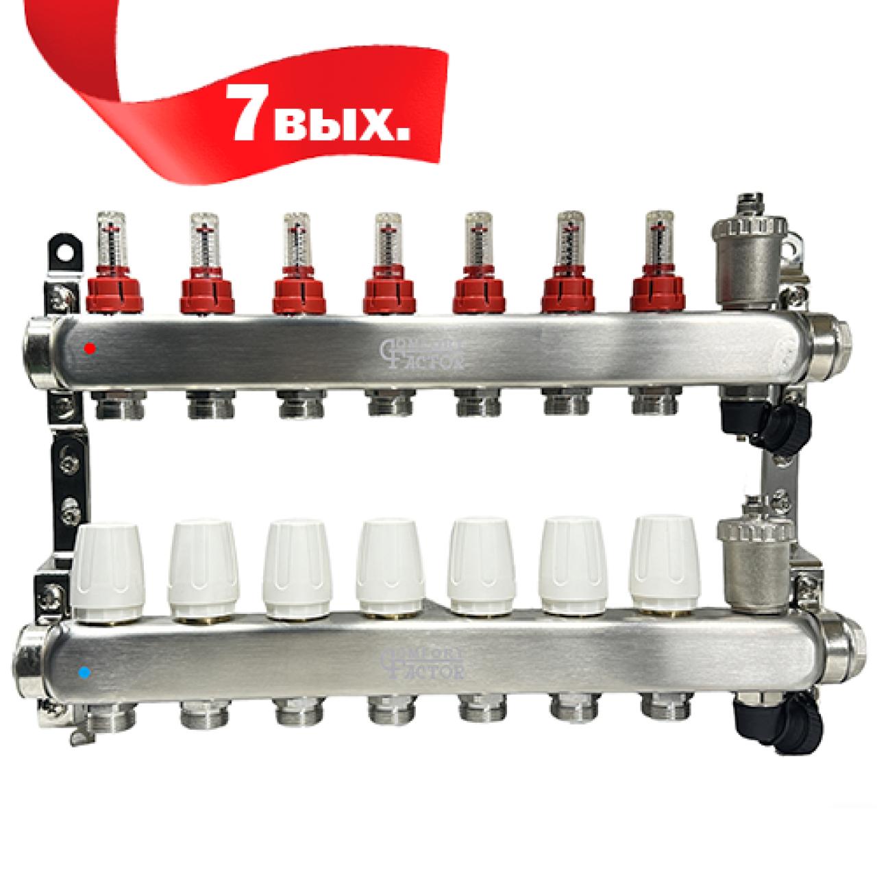 Коллекторная группа CF нерж сталь 7 вых. в сборе с автоматическим воздухоотводчиком, расходомерам.