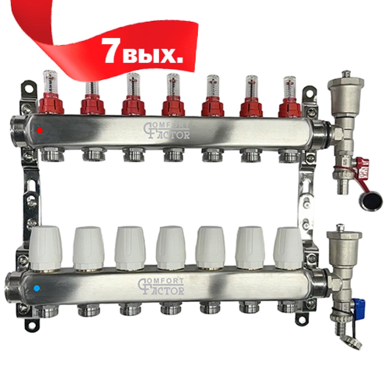 Коллекторная группа CF нерж сталь 7 вых. в сборе с автоматическим воздухоотводчиком, расходомерам