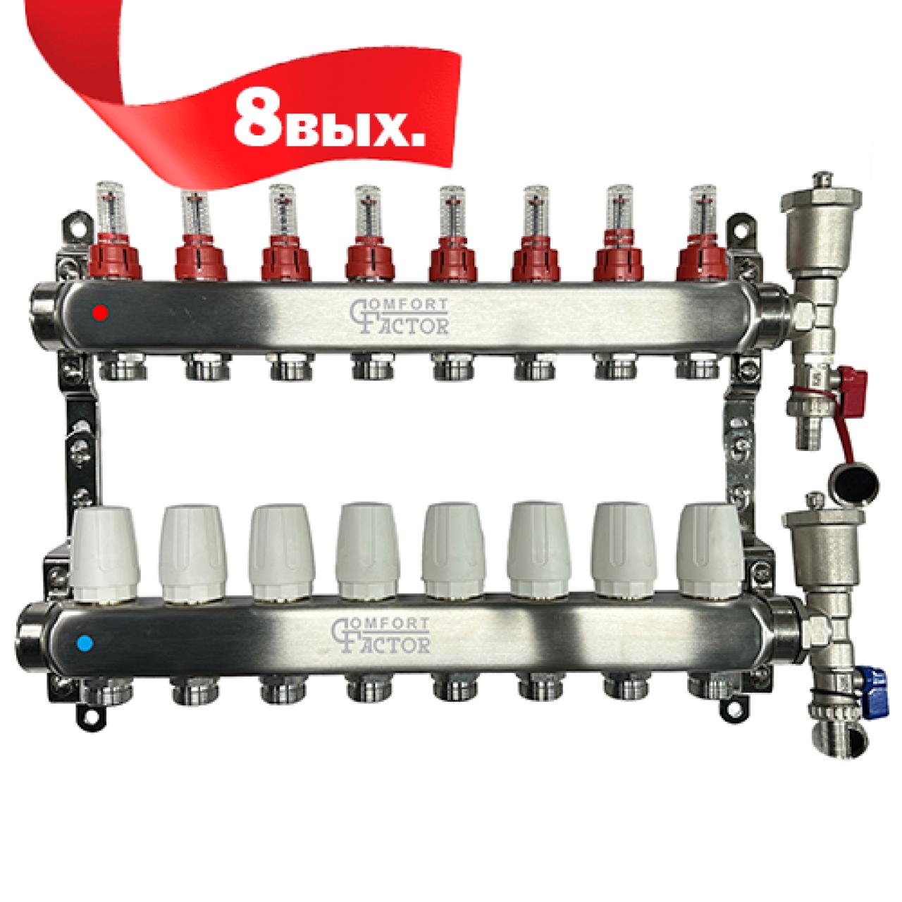 Коллекторная группа CF нерж сталь 8 вых. в сборе с автоматическим воздухоотводчиком, расходомерам