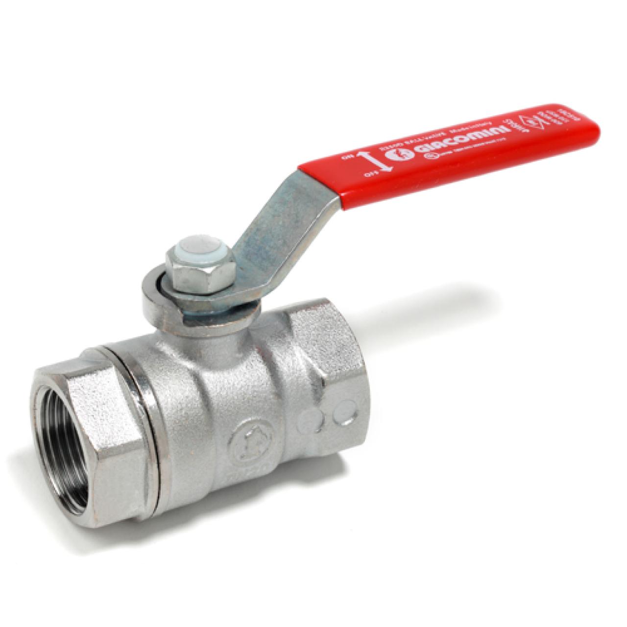 Кран шаровой, резьба внутренняя/внутренняя, стандартный проход, хромированный, ручка - рычаг красный. Диаметр 1".